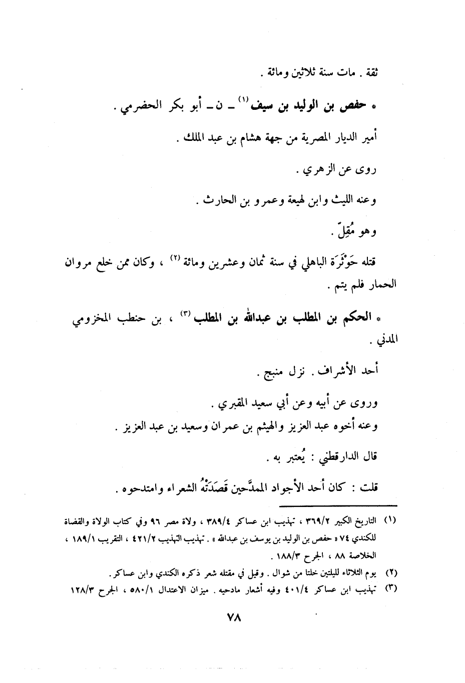 [1] التاريخ الكبير 2/ 369، تهذيب ابن عساكر 4/ 389، ولاة مصر 96 وفي كتاب الولاة والقضاة للكندي 74 «حفص بن الوليد بن يوسف بن عبد الله» . تهذيب التهذيب 2/ 421، التقريب 1/ 189، الخلاصة 88، الجرح 3/ 188.