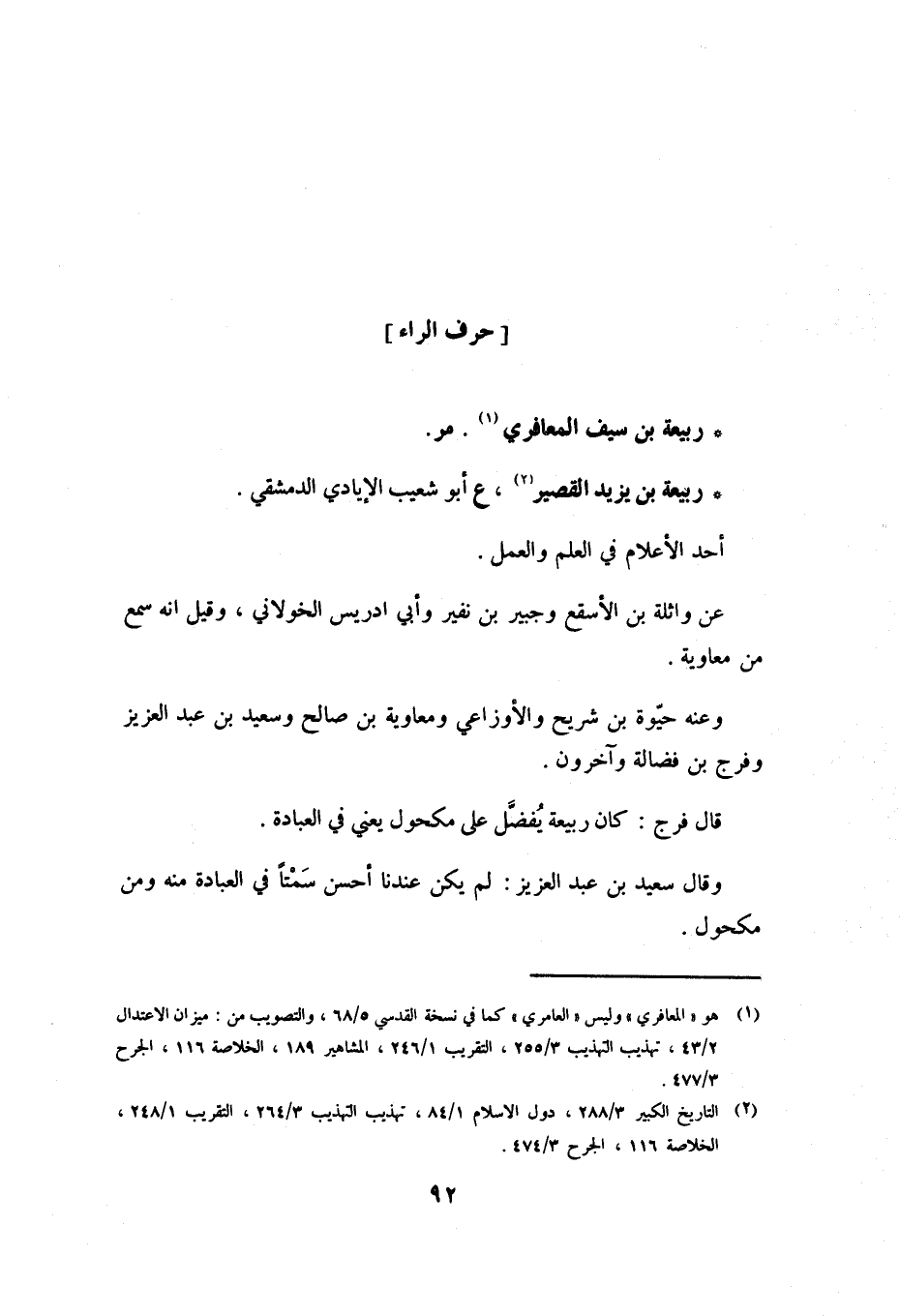 قَالَ فَرَجٌ: كَانَ رَبِيعَةُ يُفَضَّلُ عَلَى مَكْحُولٍ يَعْنِي فِي الْعِبَادَةِ.