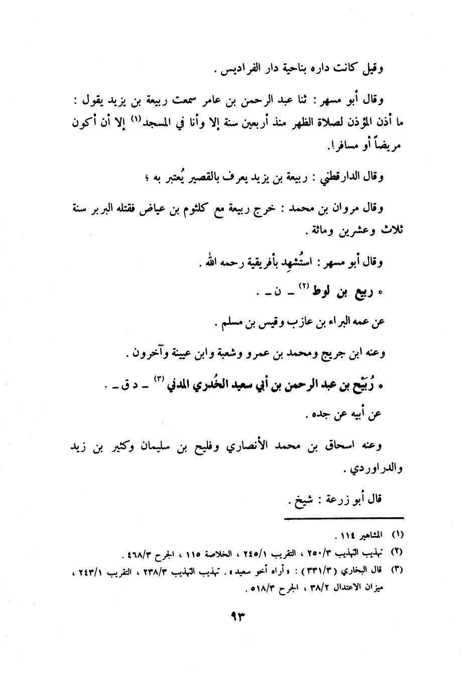 وَقَالَ أَبُو مُسْهِرٍ: ثنا عَبْدُ الرَّحْمَنِ بْنُ عَامِرٍ سَمِعْتُ رَبِيعَةَ بْنَ يَزِيدَ يَقُولُ:
