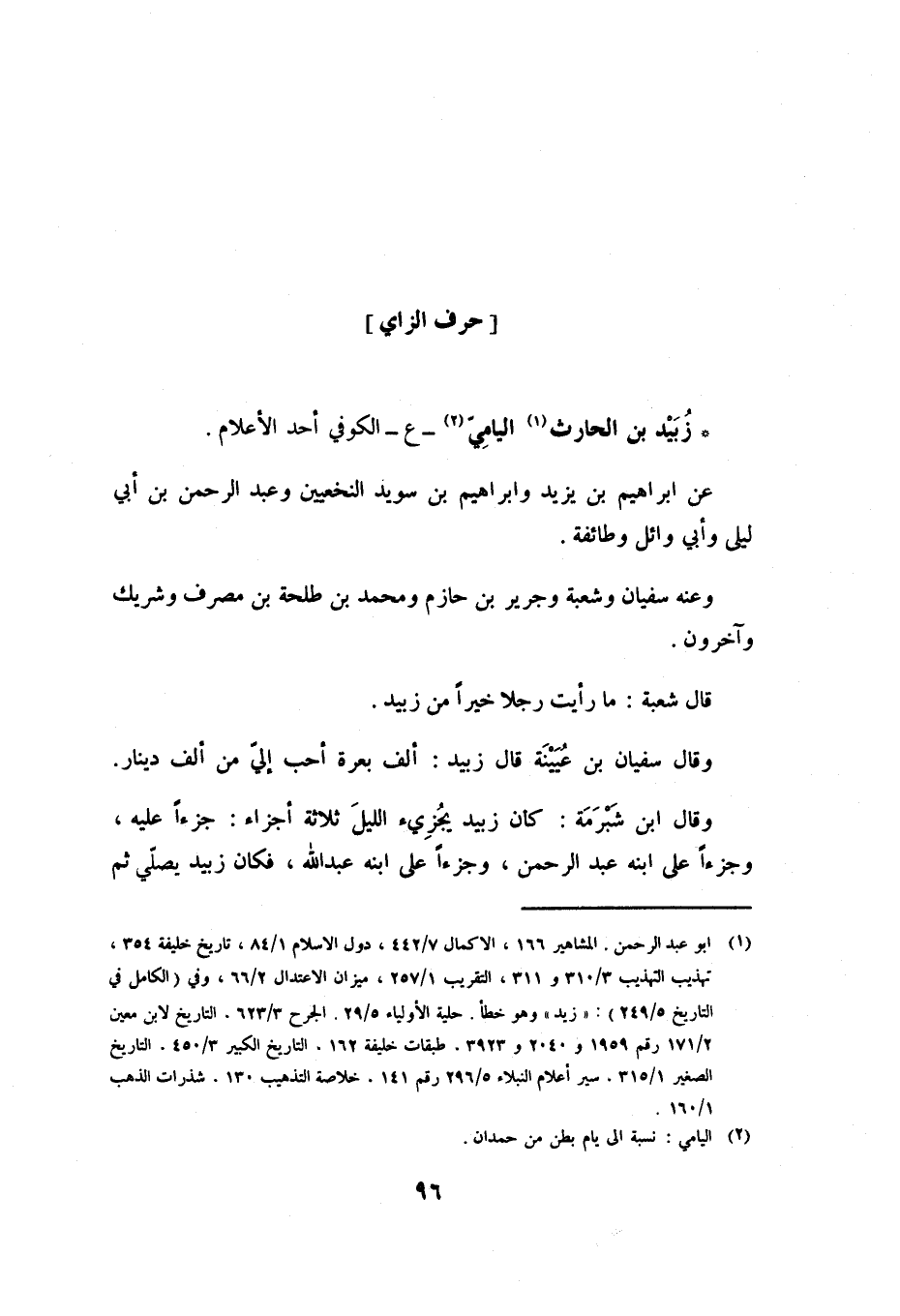 [1] ابو عبد الرحمن. المشاهير 166، الإكمال 7/ 442، دول الإسلام 1/ 84، تاريخ خليفة 354، تهذيب التهذيب 3/ 310 و 311، التقريب 1/ 257، ميزان الاعتدال 2/ 66، وفي (الكامل في التاريخ 5/ 249) : «زيد» وهو خطأ. حلية الأولياء 5/ 29. الجرح 3/ 623، التاريخ لابن معين 2/ 171 رقم 1959 و 2040 و 3923. طبقات خليفة 162، التاريخ الكبير 3/ 450، التاريخ الصغير 1/ 315، سير أعلام النبلاء 5/ 296 رقم 141، خلاصة التذهيب 130، شذرات الذهب 1/ 160.