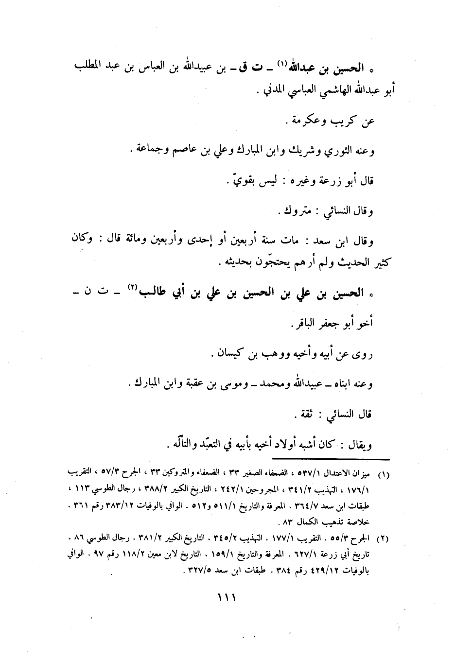 الحسين بن عبد الله [1]- ت ق- بْنِ عَبْدِ اللَّهِ بْنِ الْعَبَّاسِ بْنِ عَبْدِ الْمُطَّلِبِ أَبُو عَبْدِ اللَّهِ الْهَاشِمِيُّ الْعَبَّاسِيُّ الْمَدَنِيُّ.