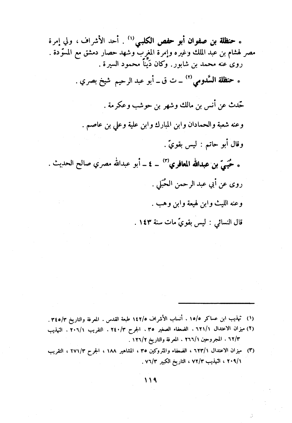 [3] ميزان الاعتدال 1/ 623، الضعفاء والمتروكين 35، المشاهير 188، الجرح 3/ 271، التقريب 1/ 209، التهذيب 3/ 72، التاريخ الكبير 3/ 76.