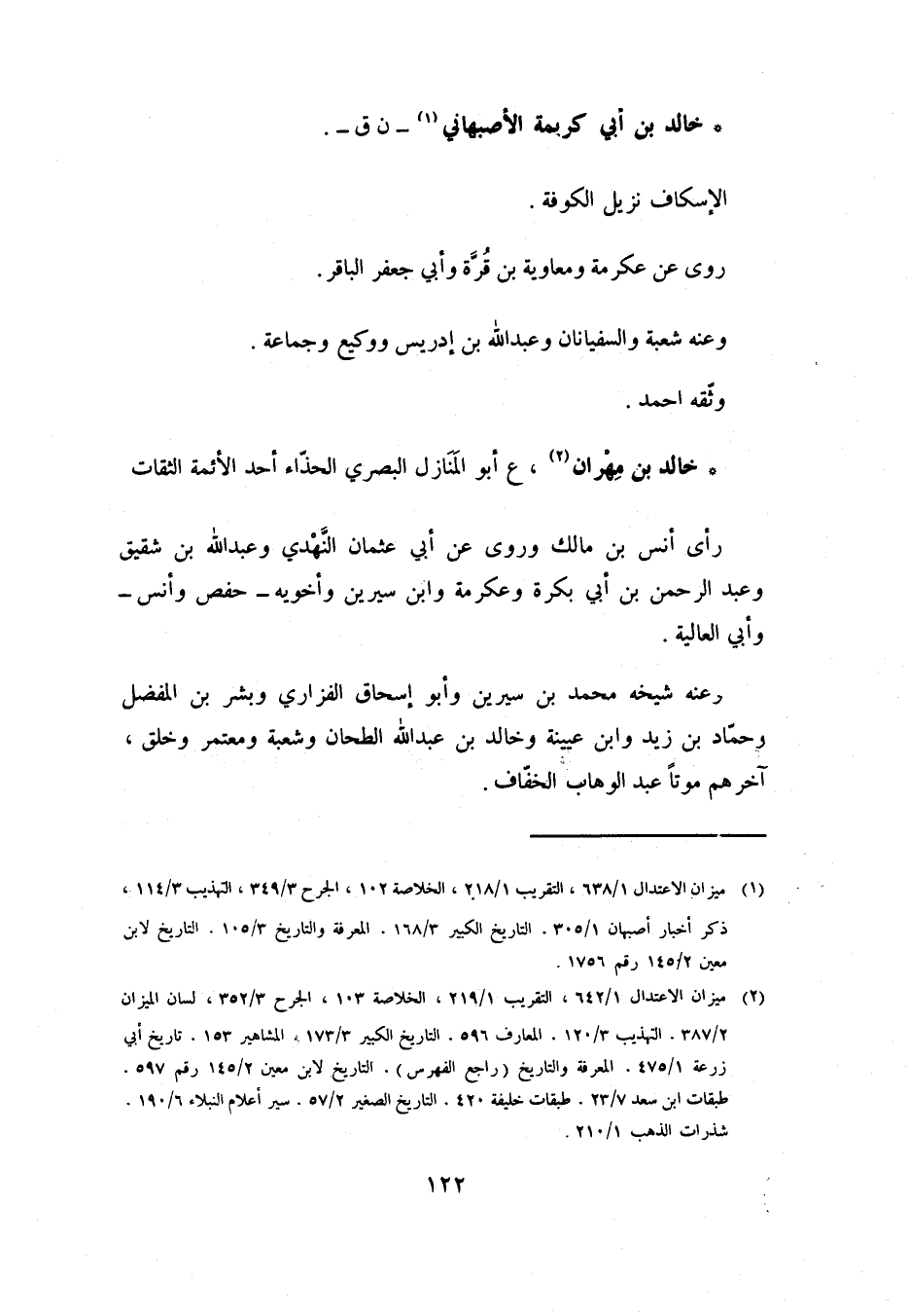 خالد بن مهران [2] ، ع أبو المنازل البصري الحذّاء أَحَدُ الأَئِمَّةِ الثِّقَاتِ رَأَى أَنَسَ بْنَ مَالِكٍ وَرَوَى عَنْ أَبِي عُثْمَانَ النَّهْدِيِّ وَعَبْدِ اللَّهِ بْنِ شَقِيقٍ وَعَبْدِ الرَّحْمَنِ بْنِ أَبِي بَكْرَةَ وَعِكْرِمَةَ وَابْنِ سِيرِينَ وَأَخَوَيْهِ- حَفْصٍ وَأَنسٍ- وَأَبِي الْعَالِيَةِ.