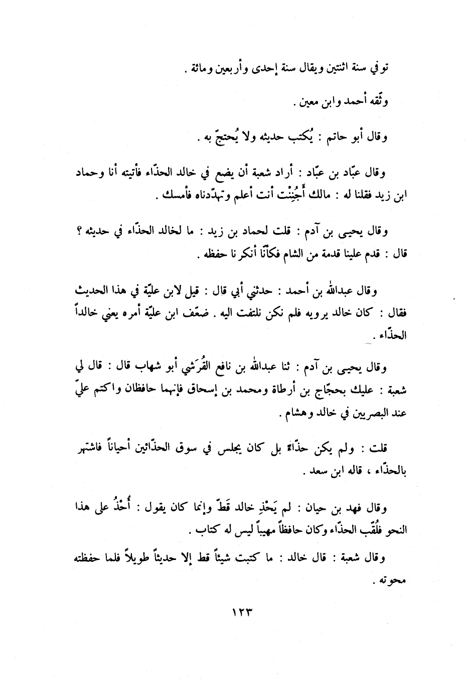 وقال يحيى بن آدم: قُلْتُ لِحَمَّادِ بْنِ زَيْدٍ: مَا لِخَالِدٍ الْحَذَّاءِ فِي حَدِيثِهِ؟