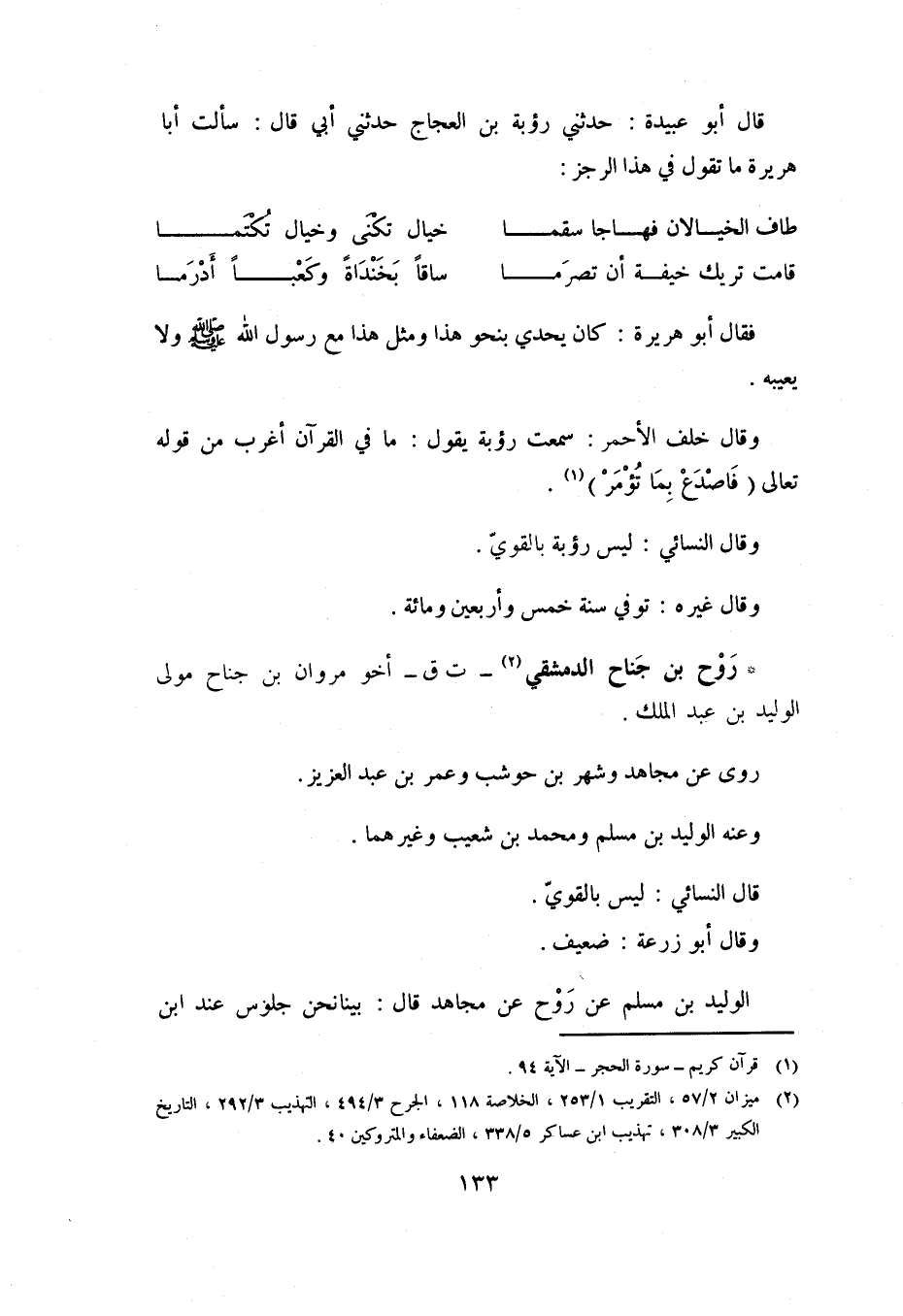 [2] ميزان 2/ 57، التقريب 1/ 253، الخلاصة 118، الجرح 3/ 494، التهذيب 3/ 292، التاريخ الكبير 3/ 308، تهذيب ابن عساكر 5/ 338، الضعفاء والمتروكين 40.