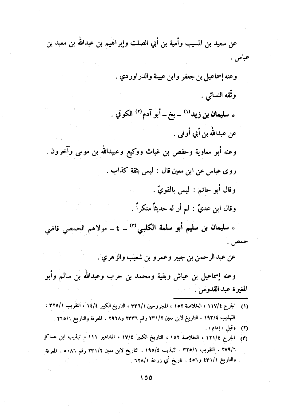 [1] الجرح 4/ 117، الخلاصة 152، المجروحين 1/ 336، التاريخ الكبير 4/ 14، التقريب 1/ 325، التهذيب 4/ 193، التاريخ لابن معين 2/ 231 رقم 2336 و 2928، المعرفة والتاريخ 1/ 265.