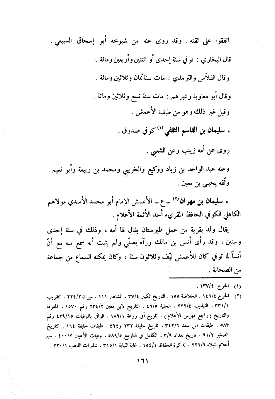 [2] الجرح 4/ 146، الخلاصة 155، التاريخ الكبير 4/ 37، المشاهير 111. ميزان 2/ 224، التقريب 1/ 331. التهذيب 4/ 222، الحلية 5/ 46، التاريخ لابن معين 2/ 234 رقم 1570. المعرفة والتاريخ (راجع فهرس الأعلام) ، تاريخ أبي زرعة 1/ 189، الوافي بالوفيات 15/ 429 رقم 583، طبقات ابن سعد 6/ 342، تاريخ خليفة 232 و 424. طبقات خليفة 164. التاريخ الصغير 2/ 91، تاريخ بغداد 9/ 3، الكامل في التاريخ 5/ 589، وفيات الأعيان 2/ 400. سير أعلام النبلاء 6/ 226، تذكرة الحفاظ 1/ 154، غاية النهاية 1/ 315. شذرات الذهب 1/ 220.