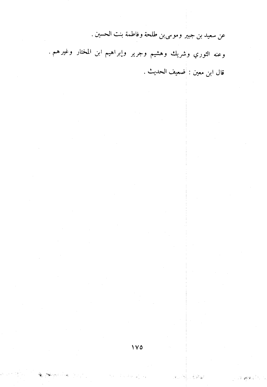 عَنْ سَعِيدِ بْنِ جُبَيْرٍ وَمُوسَى بْنِ طَلْحَةَ وَفَاطِمَةَ بِنْتِ الْحُسَيْنِ.