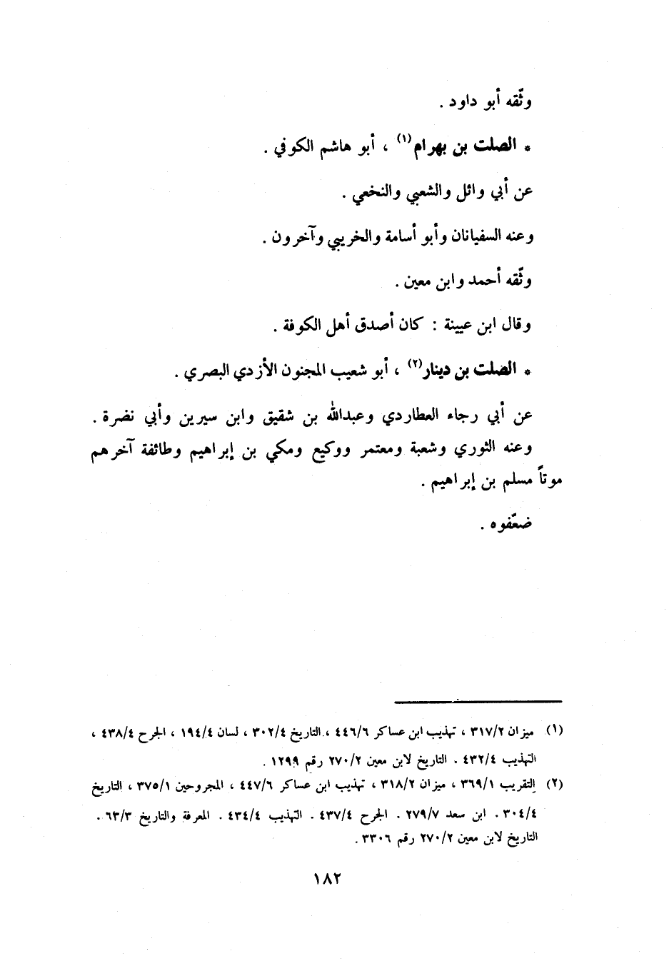 [1] ميزان 2/ 317، تهذيب ابن عساكر 6/ 446، التاريخ 4/ 302، لسان 4/ 194، الجرح 4/ 438، التهذيب 4/ 432، التاريخ لابن معين 2/ 270 رقم 1299.