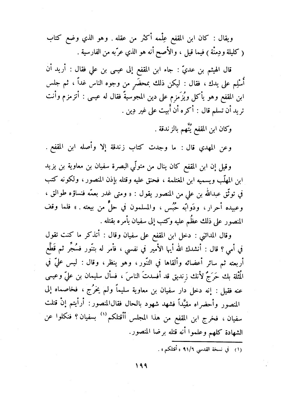 وَكَانَ ابْنُ الْمُقَفَّعِ يُتَّهَمُ بِالزَّنْدَقَةِ.