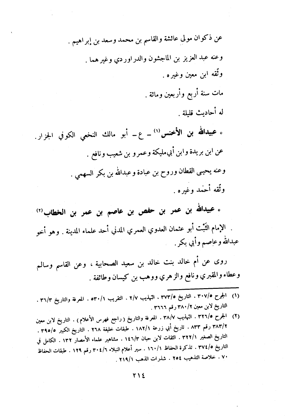 [2] الجرح 5/ 326، التهذيب 7/ 38، المعرفة والتاريخ (راجع فهرس الأعلام) . التاريخ لابن معين 2/ 383 رقم 833. تاريخ أبي زرعة 1/ 182. طبقات خليفة 268، التاريخ الكبير 5/ 395.
