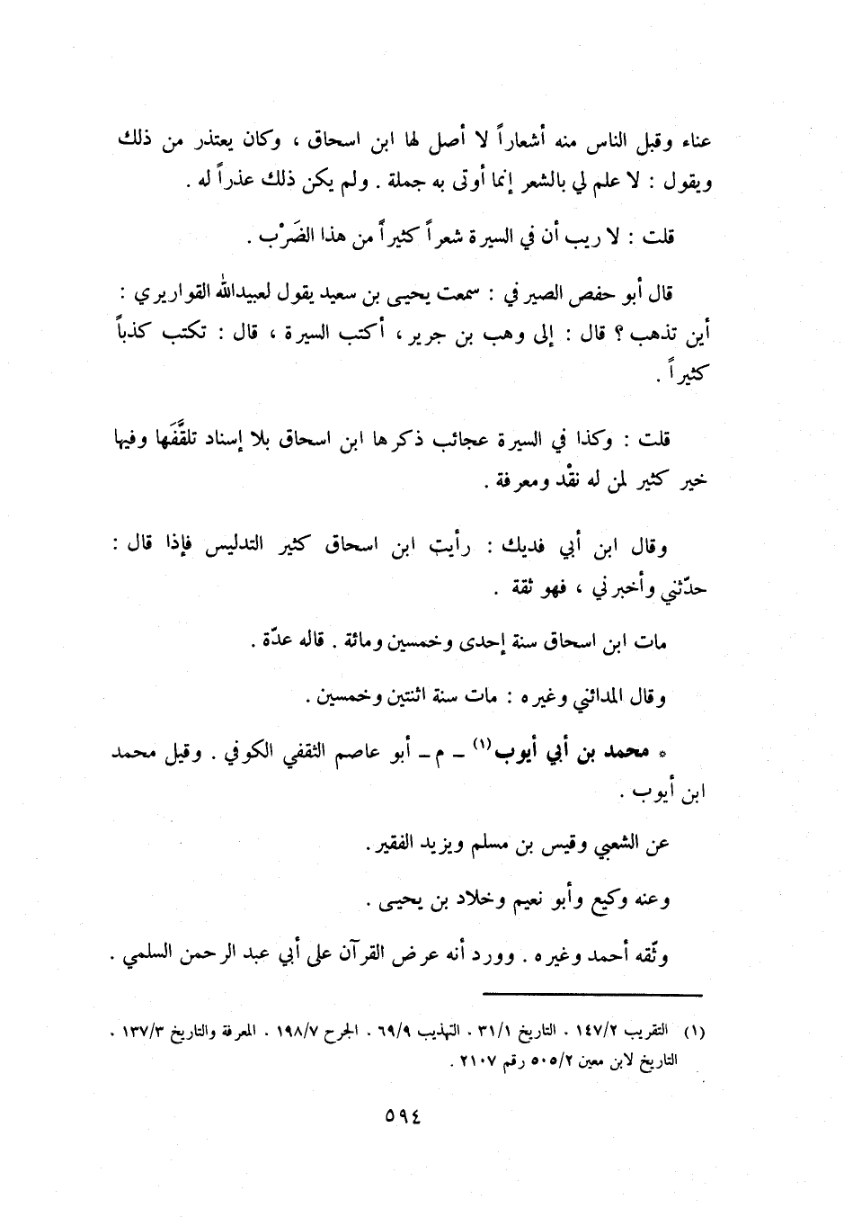 قُلْتُ: وكذا فِي السيرة عجائب ذكرها ابْن إِسْحَاق بلا إسناد تلقَّفَها وفيها خير كثير لمن لَهُ نقْد ومعرفة.