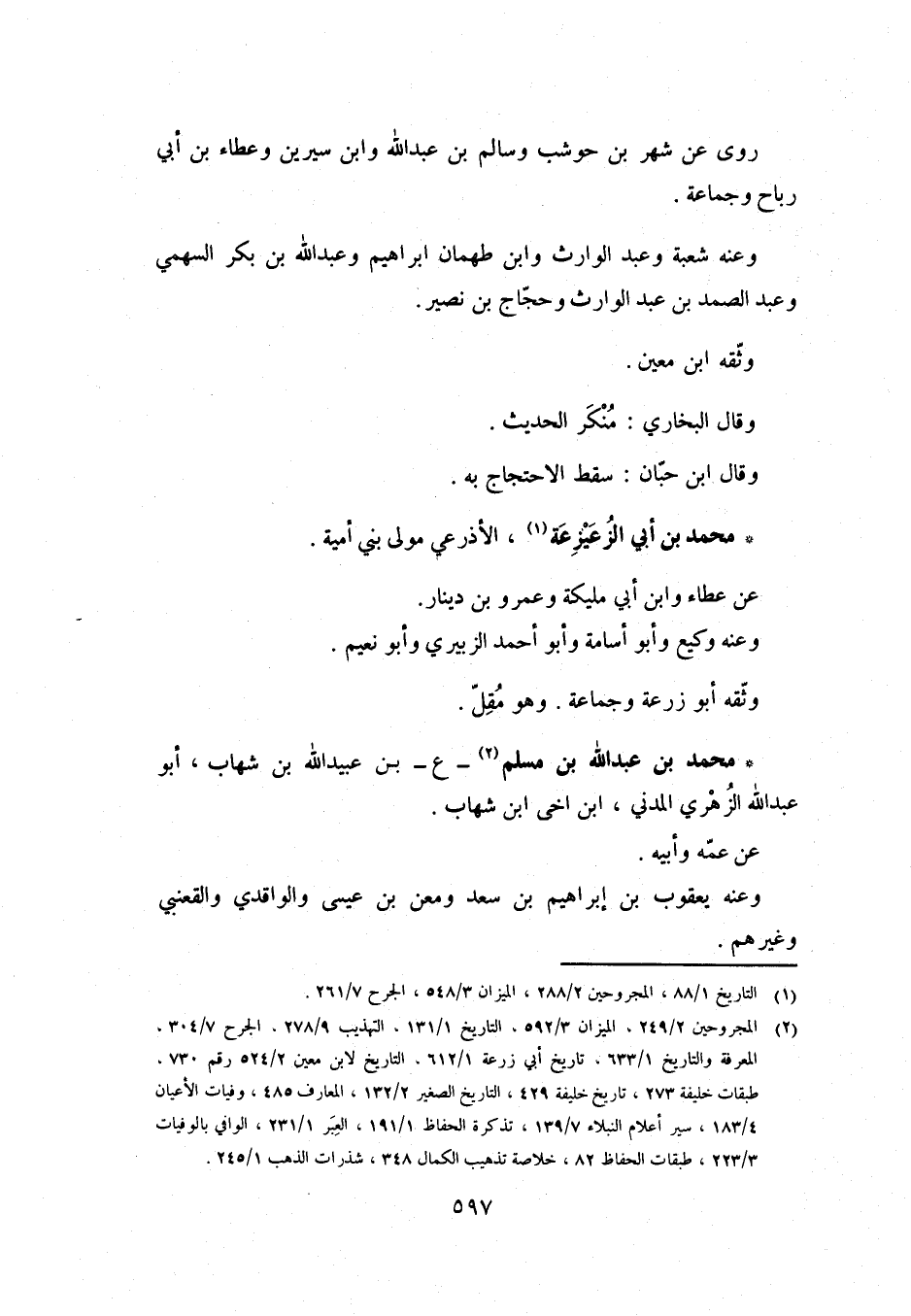 [2] المجروحين 2/ 249، الميزان 3/ 592، التاريخ 1/ 131، التهذيب 9/ 278، الجرح 7/ 304، المعرفة والتاريخ 1/ 633، تاريخ أبي زرعة 1/ 612، التاريخ لابن معين 2/ 524 رقم 730، طبقات خليفة 273، تاريخ خليفة 429، التاريخ الصغير 2/ 132، المعارف 485، وفيات الأعيان 4/ 183، سير أعلام النبلاء 7/ 139، تذكرة الحفاظ 1/ 191، العبر 1/ 231، الوافي بالوفيات 3/ 223، طبقات الحفاظ 82، خلاصة تذهيب الكمال 348، شذرات الذهب 1/ 245.