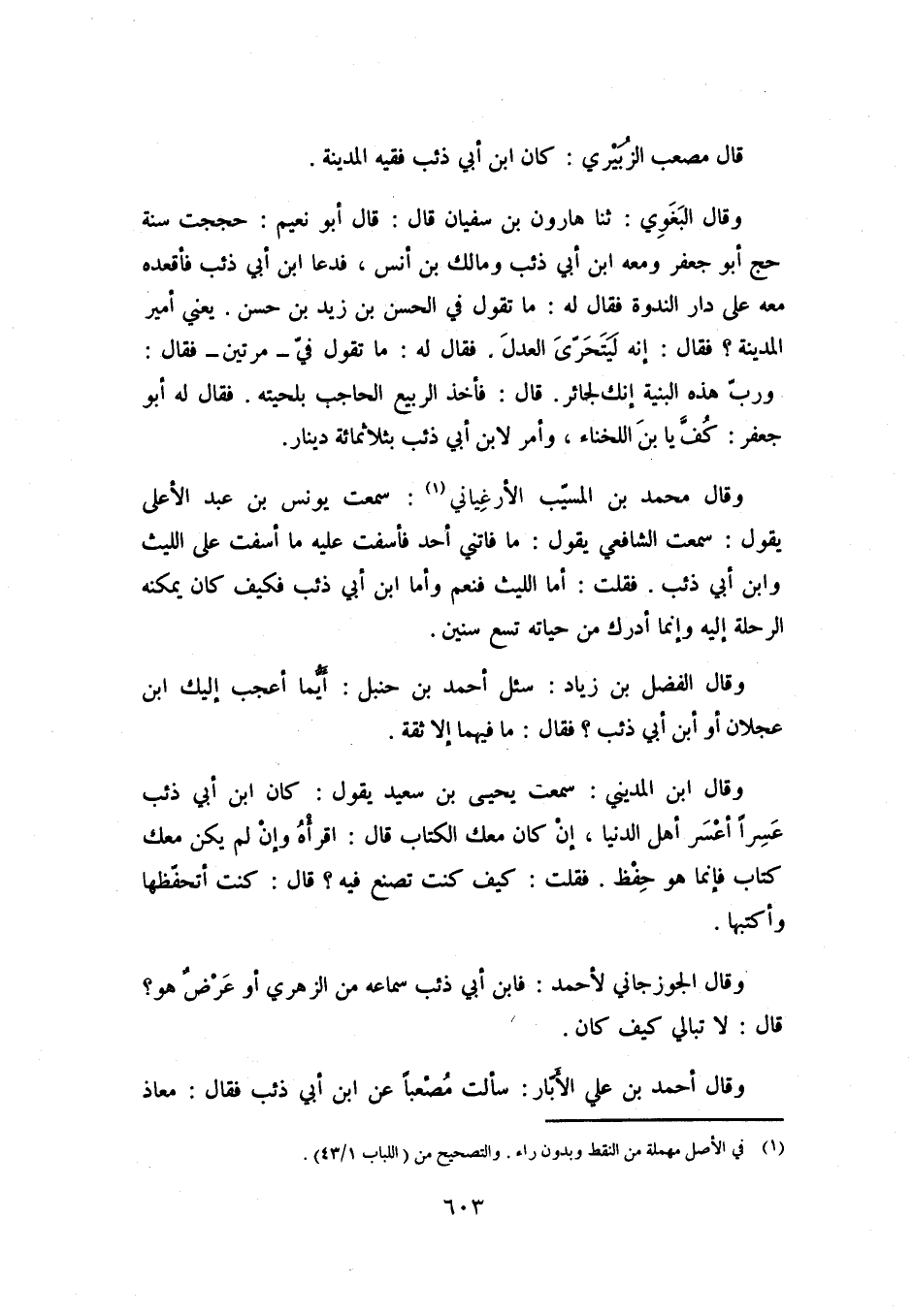 وقال أَحْمَد بْن علي الأَبّار: سَأَلت مُصْعبًا عَن ابْن أَبِي ذئب فَقَالَ: معاذ