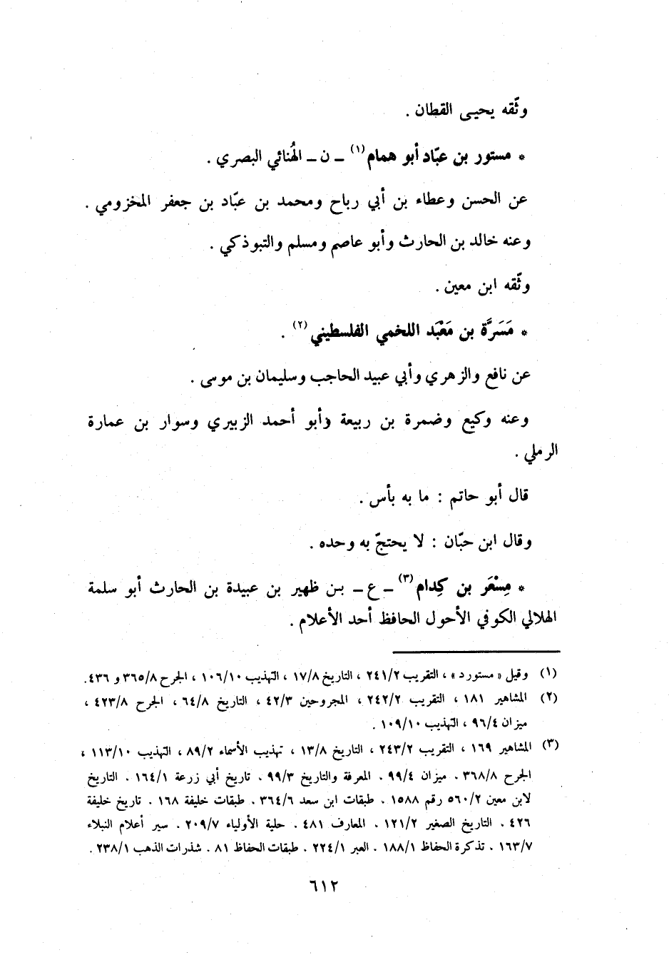 [3] المشاهير 169، التقريب 2/ 243، التاريخ 8/ 13، تهذيب الأسماء 2/ 89، التهذيب 10/ 113، الجرح 8/ 368، ميزان 4/ 99، المعرفة والتاريخ 3/ 99، تاريخ أبي زرعة 1/ 164، التاريخ لابن معين 2/ 560 رقم 1588، طبقات ابن سعد 6/ 364، طبقات خليفة 168، تاريخ خليفة 426، التاريخ الصغير 2/ 121، المعارف 481، حلية الأولياء 7/ 209، سير أعلام النبلاء 7/ 163، تذكرة الحفاظ 1/ 188، العبر 1/ 224، طبقات الحفاظ 81، شذرات الذهب 1/ 238.