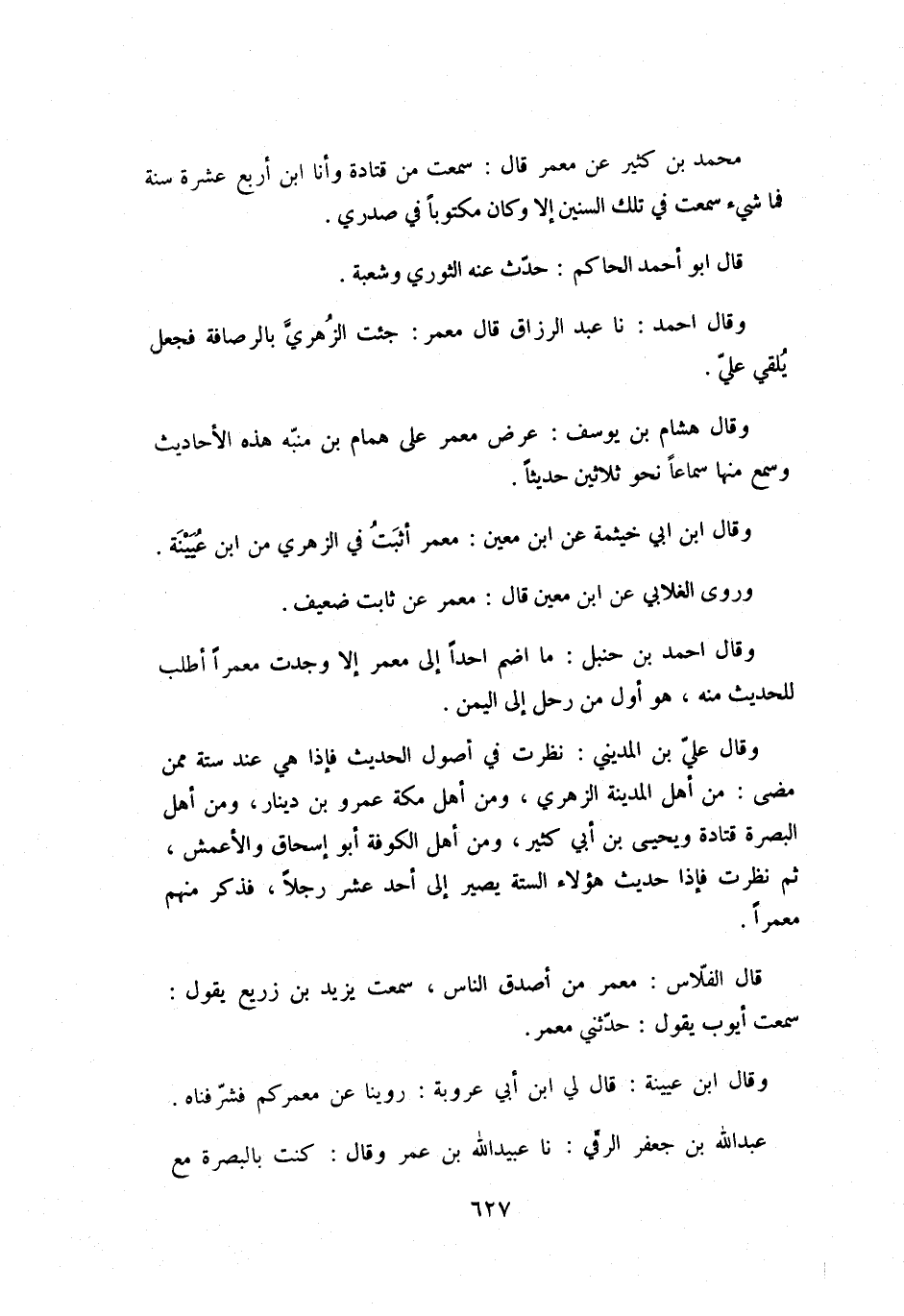 وقال أَحْمَد بْن حنبل: مَا أضم أحدًا إِلَى معمر إلا وجدت معمرًا أطلب للحديث مِنْهُ، هُوَ أول من رحل إِلَى اليمن.