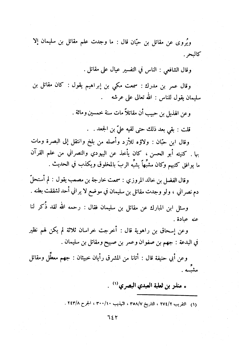 وسئل ابْن الْمُبَارَك عَن مقاتل بْن سُلَيْمَان فَقَالَ: رحمه اللَّه لقد ذُكر لنا عَنْهُ عبادة.