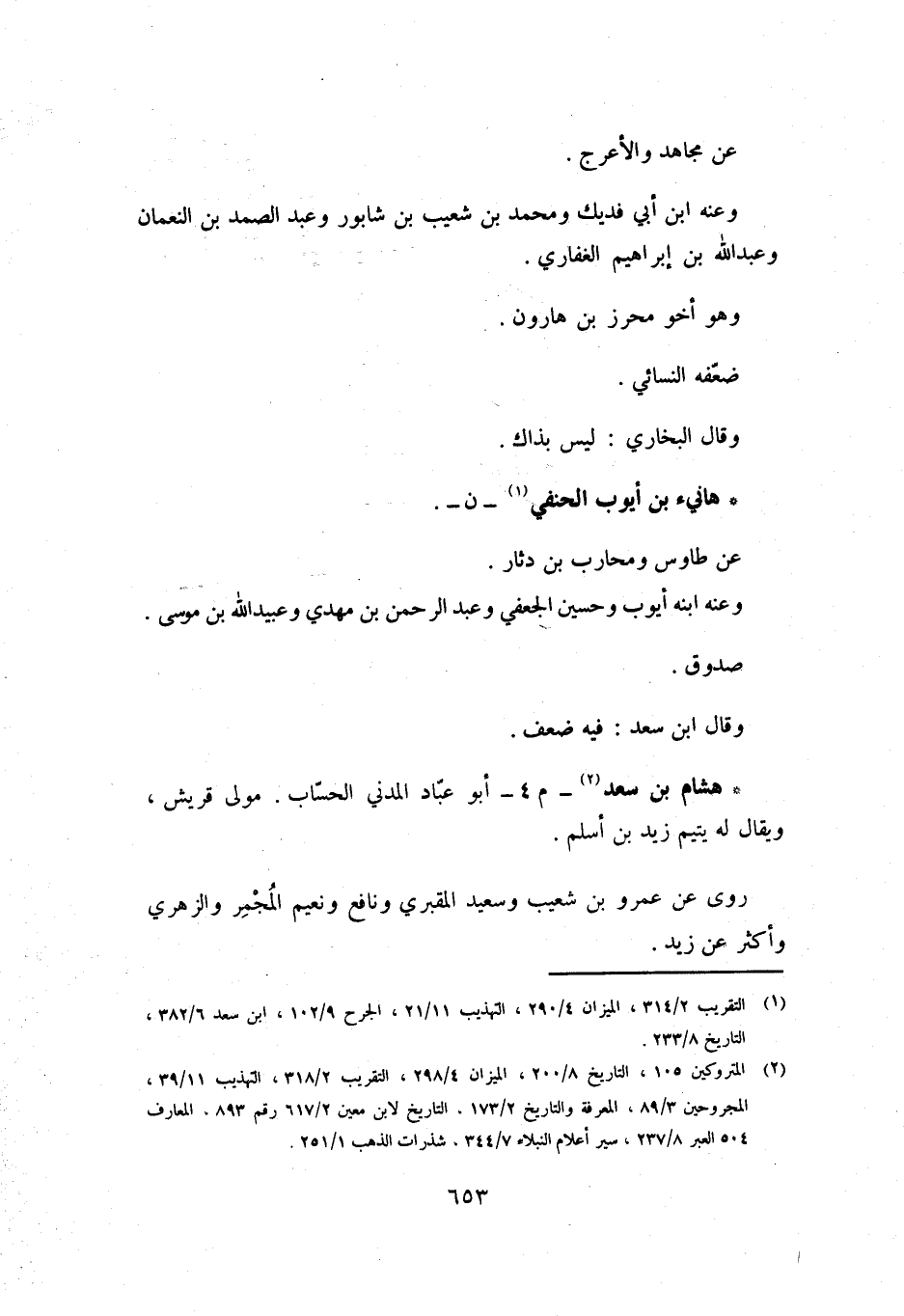 [2] المتروكين 105، التاريخ 8/ 200، الميزان 4/ 298، التقريب 2/ 318، التهذيب 11/ 39، المجروحين 3/ 89، المعرفة والتاريخ 2/ 173، التاريخ لابن معين 2/ 617 رقم 893، المعارف 504 العبر 8/ 237، سير أعلام النبلاء 7/ 344، شذرات الذهب 1/ 251.