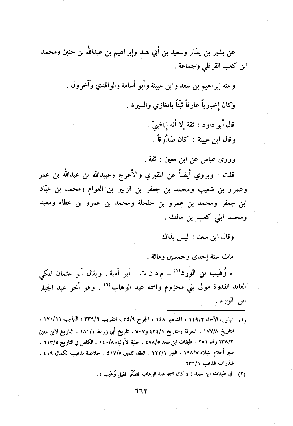 [2] في طبقات ابن سعد: «كان اسمه عبد الوهاب فصغّر فقيل وهيب» .