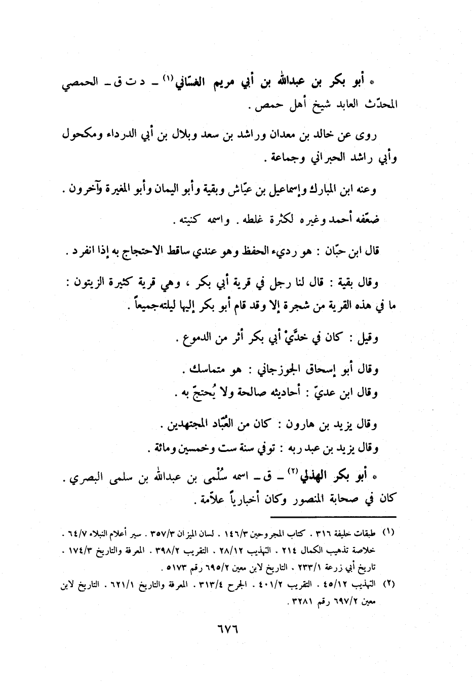 [1] طبقات خليفة 316، كتاب المجروحين 3/ 146، لسان الميزان 3/ 357، سير أعلام النبلاء 7/ 64، خلاصة تذهيب الكمال 214، التهذيب 12/ 28، التقريب 2/ 398، المعرفة والتاريخ 3/ 174، تاريخ أبي زرعة 1/ 233، التاريخ لابن معين 2/ 695 رقم 5173.