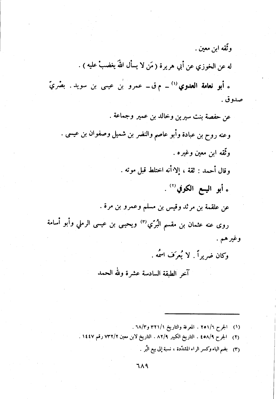 [1] الجرح 6/ 251، المعرفة والتاريخ 1/ 321 و 3/ 68.