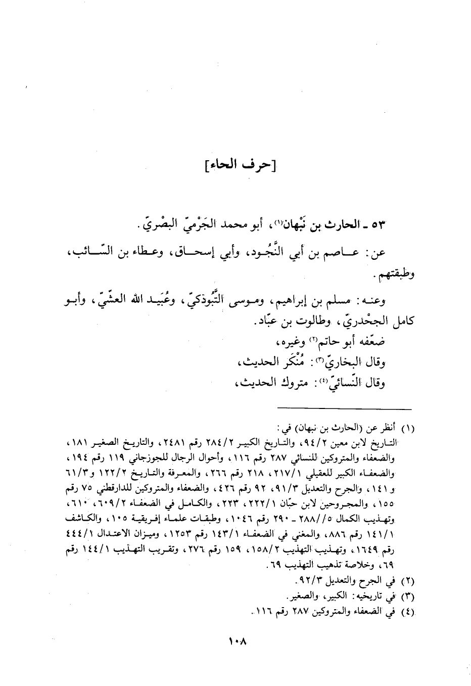 53- الْحَارِثُ بْنُ نَبْهَانَ [1] ، أَبُو مُحَمَّدٍ الْجَرْمِيُّ الْبَصْرِيُّ.