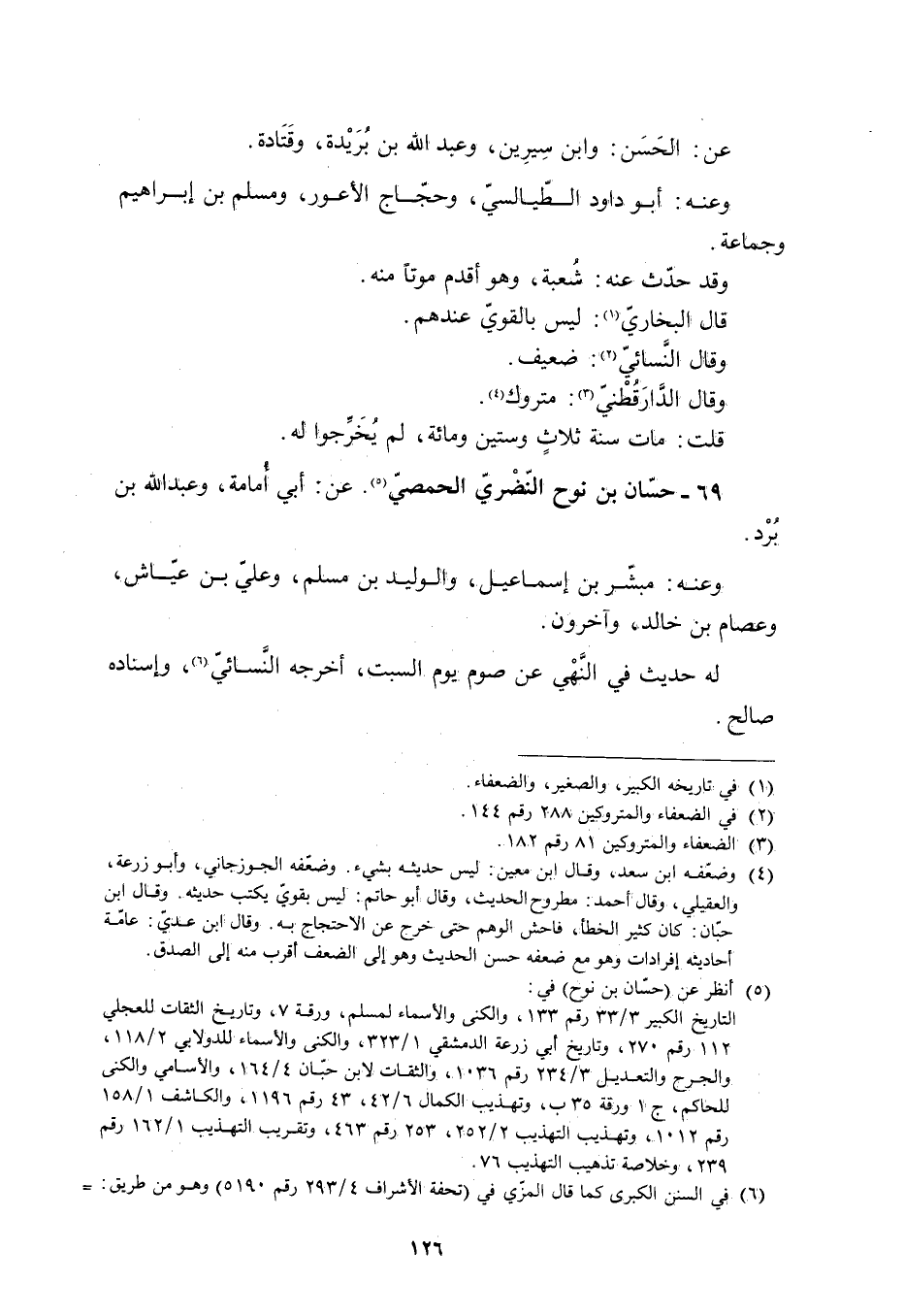 69- حَسَّانُ بْنُ نُوحٍ النَّضْرِيُّ الْحِمْصِيُّ [5] . عَنْ: أَبِي أُمَامَةَ، وَعَبْدِ اللَّهِ بْنِ بُرْدٍ.