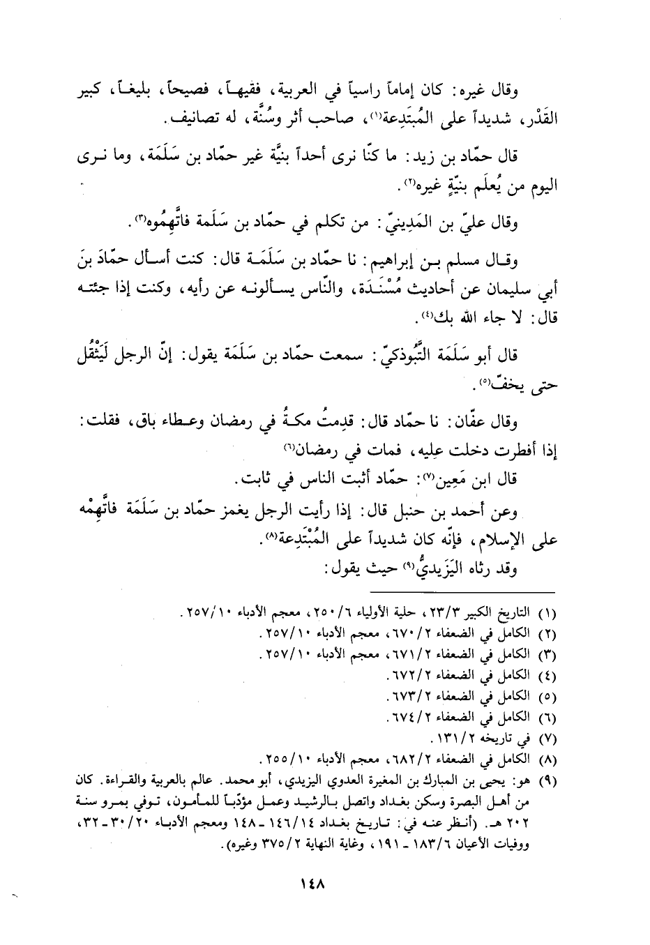 [1] التاريخ الكبير 3/ 23، حلية الأولياء 6/ 250، معجم الأدباء 10/ 257.