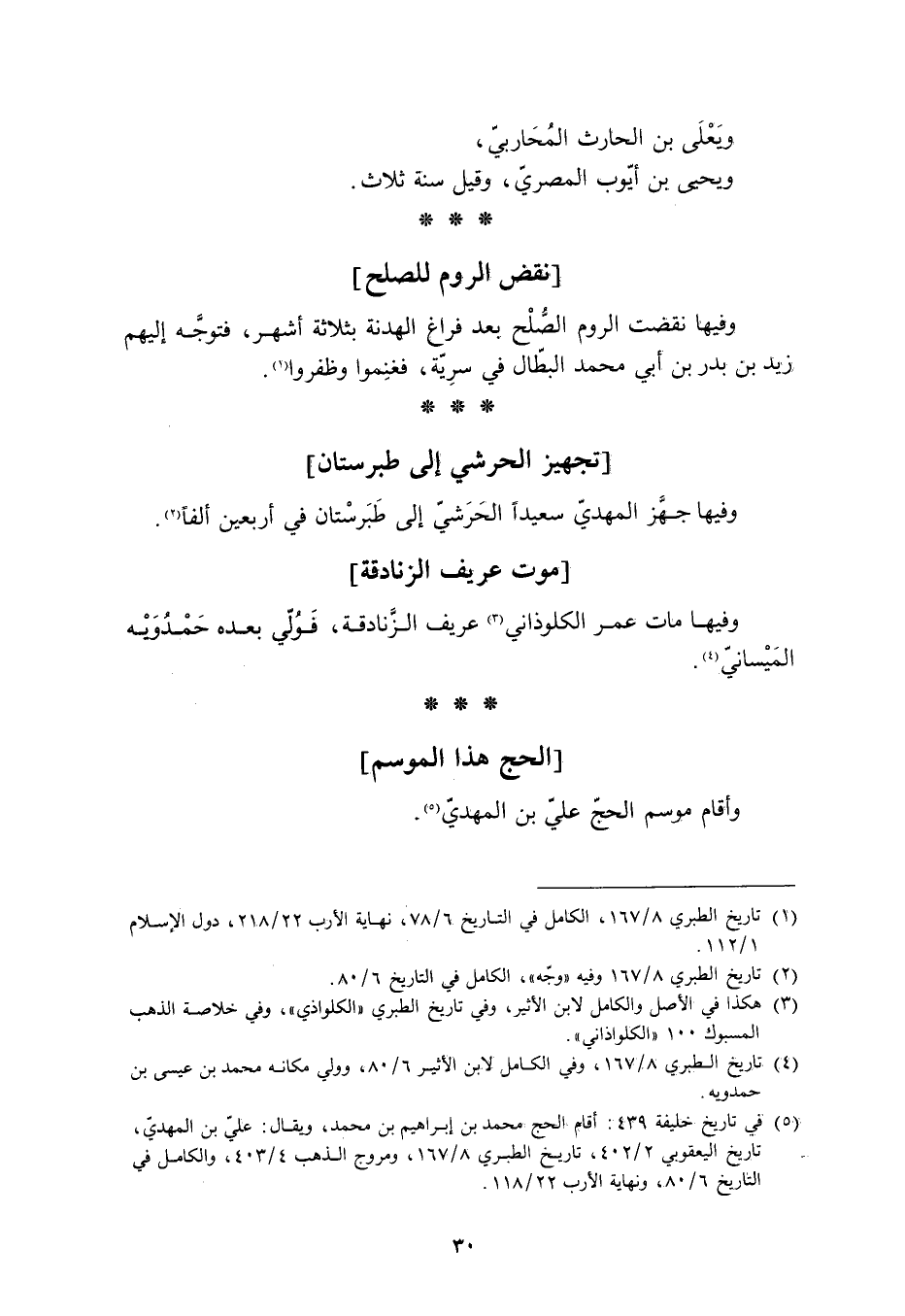 [5] في تاريخ خليفة 439: أقام الحج محمد بن إبراهيم بن محمد، ويقال: عليّ بن المهديّ، تاريخ اليعقوبي 2/ 402، تاريخ الطبري 8/ 167، ومروج الذهب 4/ 403، والكامل في التاريخ 6/ 80، ونهاية الأرب 22/ 118.