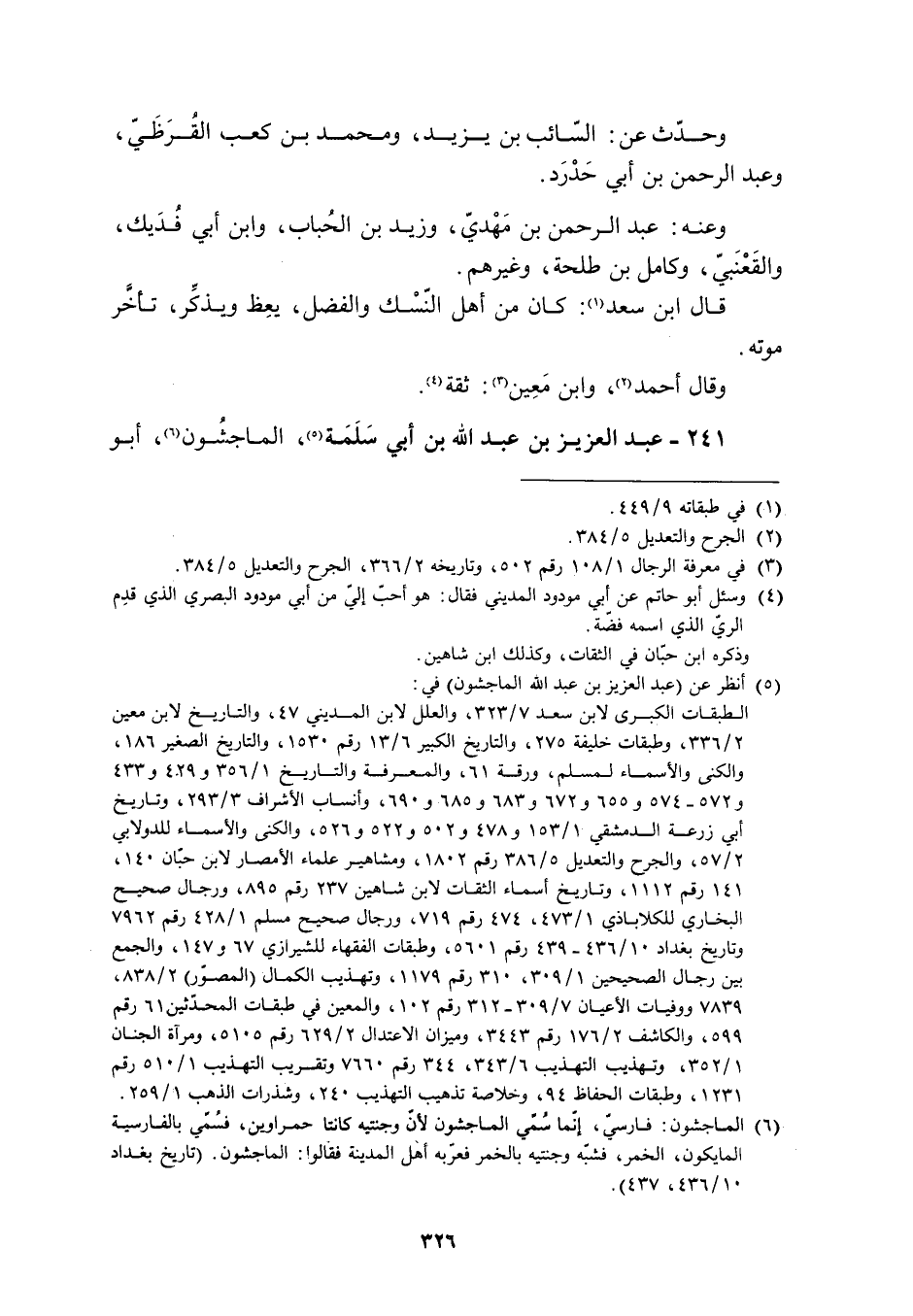241- عَبْدُ الْعَزِيزِ بْنُ عَبْدِ اللَّهِ بْنِ أَبِي سَلَمَةَ [5] ، الْمَاجِشُونُ [6] ، أبو