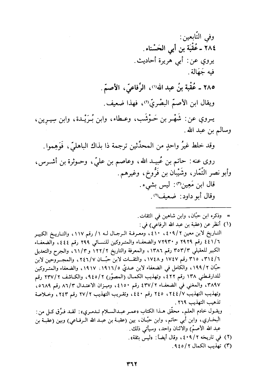 [1] انظر عن (عقبة بن عبد الله الرفاعيّ) في: