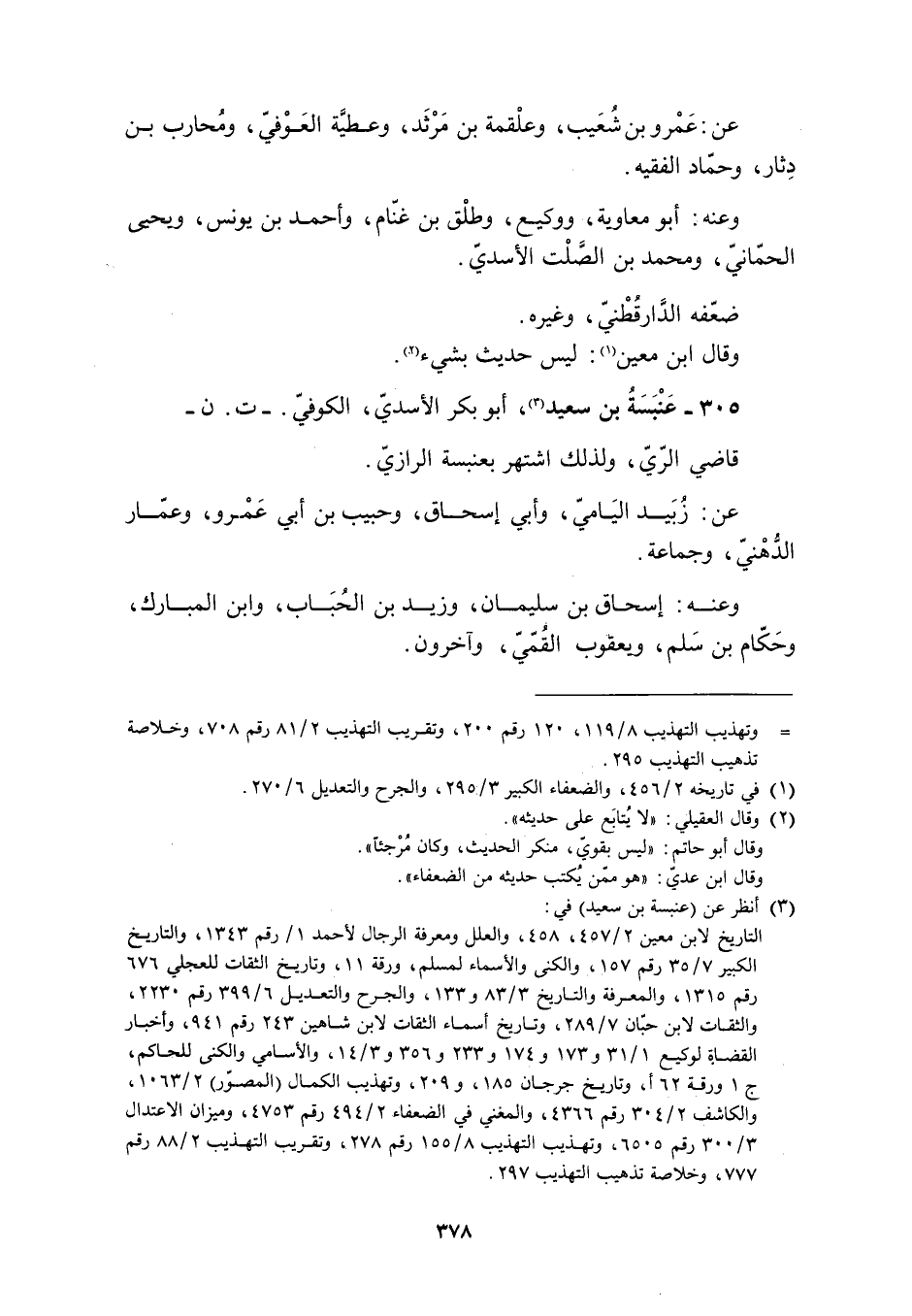 305- عَنْبَسَةُ بْنُ سَعِيدٍ [3] ، أَبُو بَكْرٍ الأَسَدِيُّ، الْكُوفِيُّ. - ت. ن- قَاضِي الرَّيِّ، وَلِذَلِكَ اشْتُهِرَ بِعَنْبَسَةَ الرَّازِيِّ.
