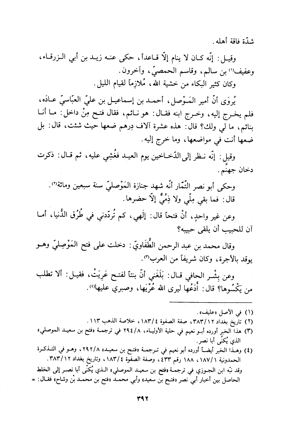 [4] وهذا الخبر أيضا أورده أبو نعيم في ترجمة «فتح بن سعيد» 8/ 292، وهو في التذكرة الحمدونية 1/ 187، 188 رقم 433، وصفة الصفوة 4/ 183، وتاريخ بغداد 12/ 383.