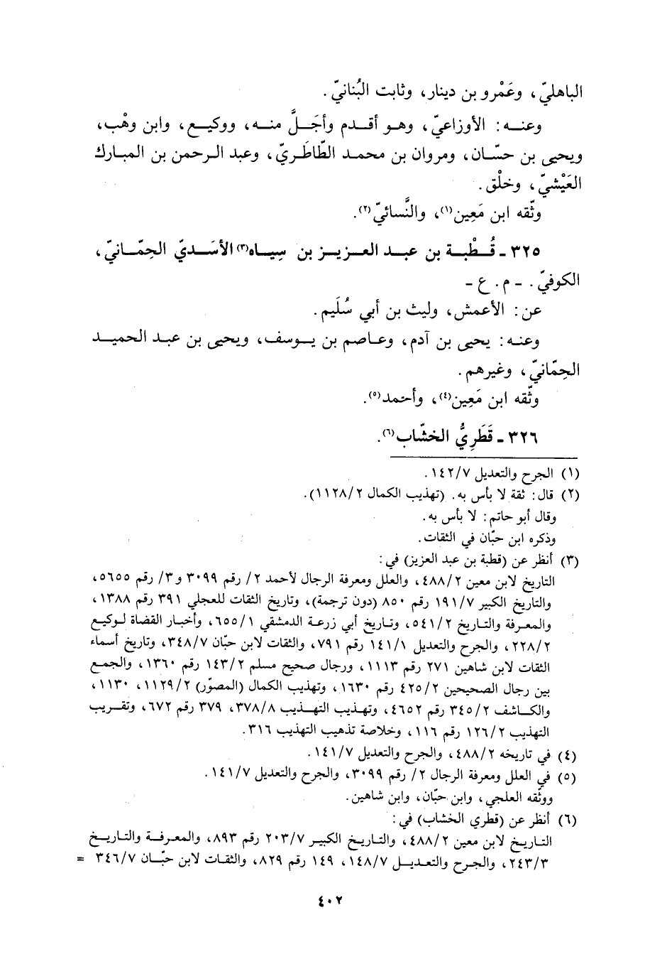 325- قُطْبَةُ بْنُ عَبْدِ الْعَزِيزِ بْنِ سِيَاهٍ [3] الأَسَدِيُّ الْحِمَّانِيُّ، الْكُوفِيُّ. - م. ع- عَنِ: الأَعْمَشِ، وَلَيْثِ بْنِ أَبِي سُلَيْمٍ.