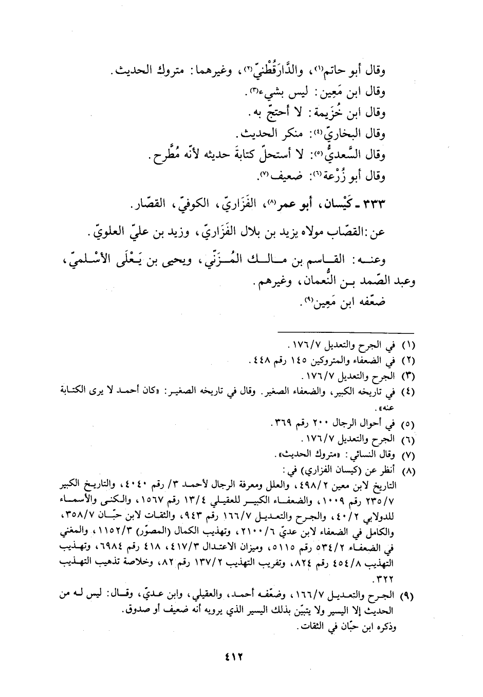 [9] الجرح والتعديل 7/ 166، وضعّفه أحمد، والعقيلي، وابن عديّ، وقال: ليس له من الحديث إلّا اليسير ولا يتبيّن بذلك اليسير الّذي يرويه أنه ضعيف أو صدوق.