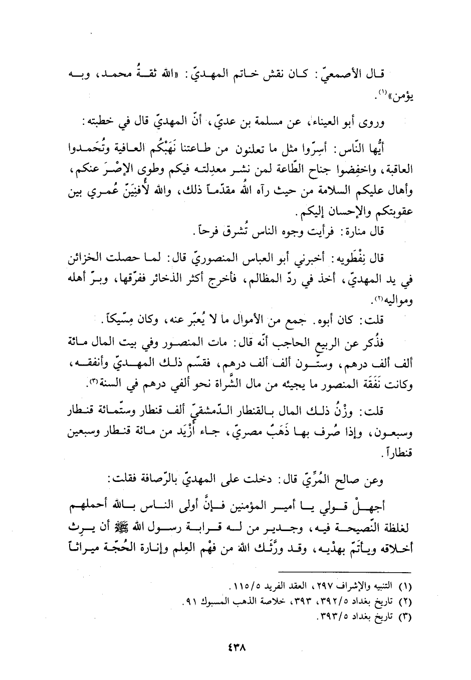 [2] تاريخ بغداد 5/ 392، 393، خلاصة الذهب المسبوك 91.