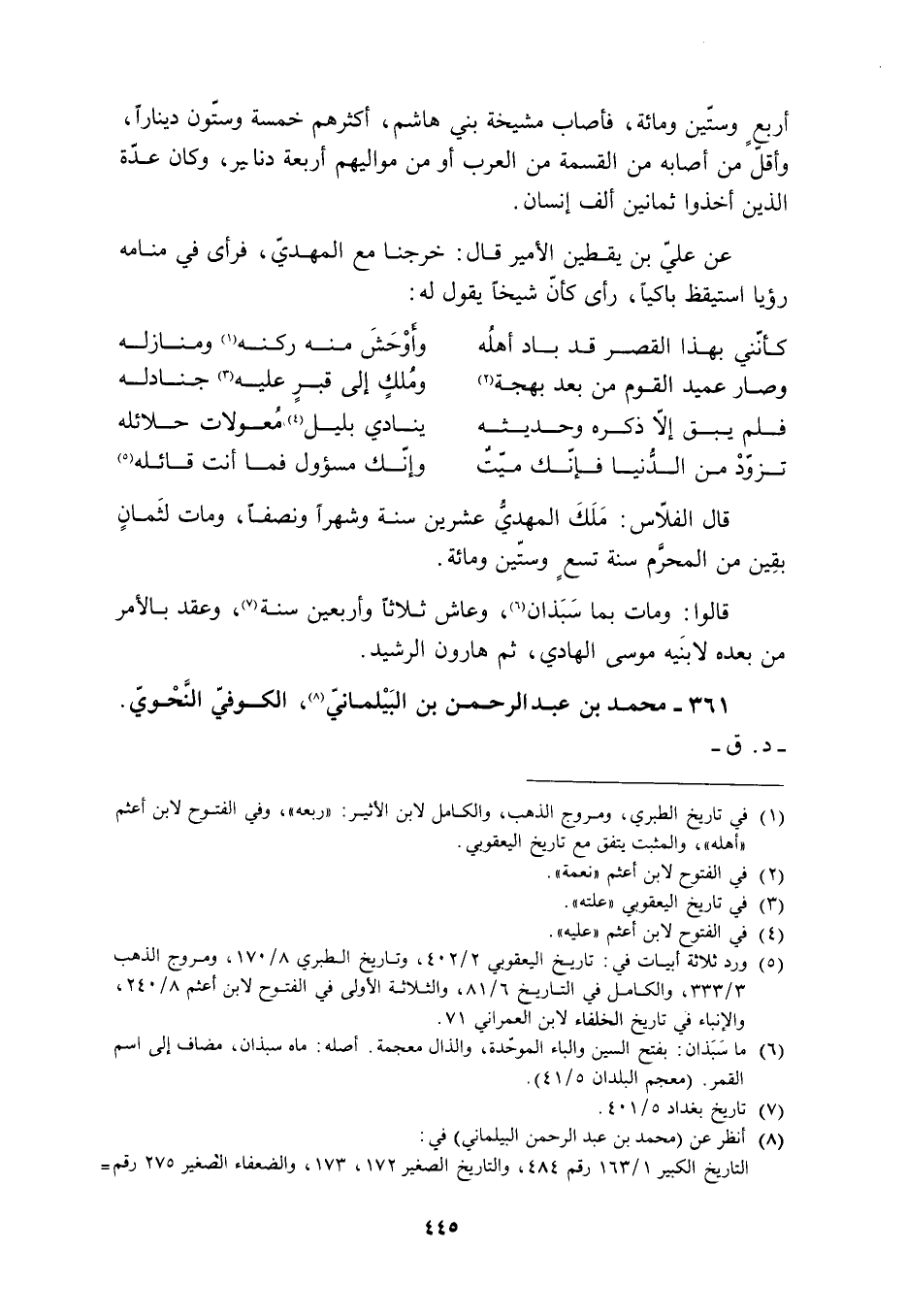 361- مُحَمَّدُ بْنُ عَبْدِ الرَّحْمَنِ بْنِ الْبَيْلَمَانِيِّ [8] ، الْكُوفِيُّ النَّحْوِيُّ- د. ق-