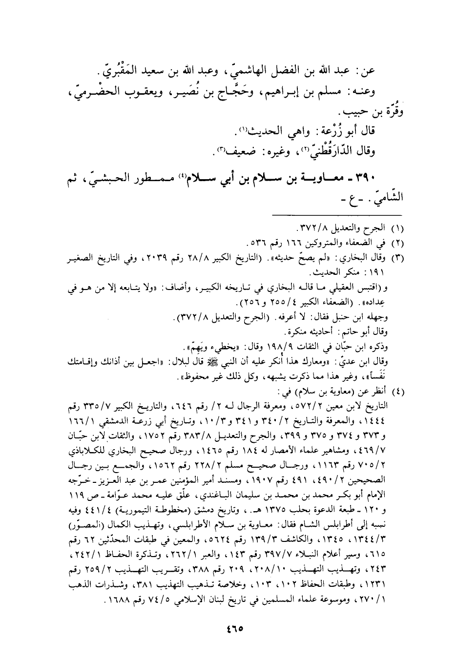 390- مَعَاوِيَةُ بْنُ سَلامِ بْنِ أَبِي سَلامٍ [4] مَمْطُورٍ الْحَبَشِيِّ، ثُمَّ الشَّامِيُّ. - ع-