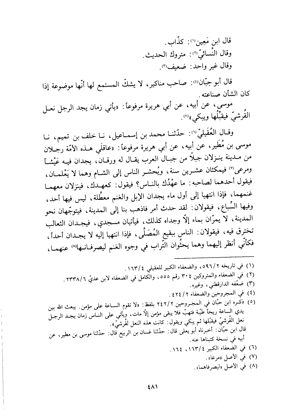 [6] في الضعفاء الكبير 4/ 163، 164.