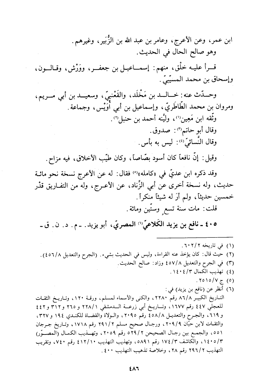 405- نَافِعُ بْنُ يَزِيدَ الْكَلاعِيُّ [6] الْمِصْرِيُّ، أبو يزيد. - م. د. ن. ق-