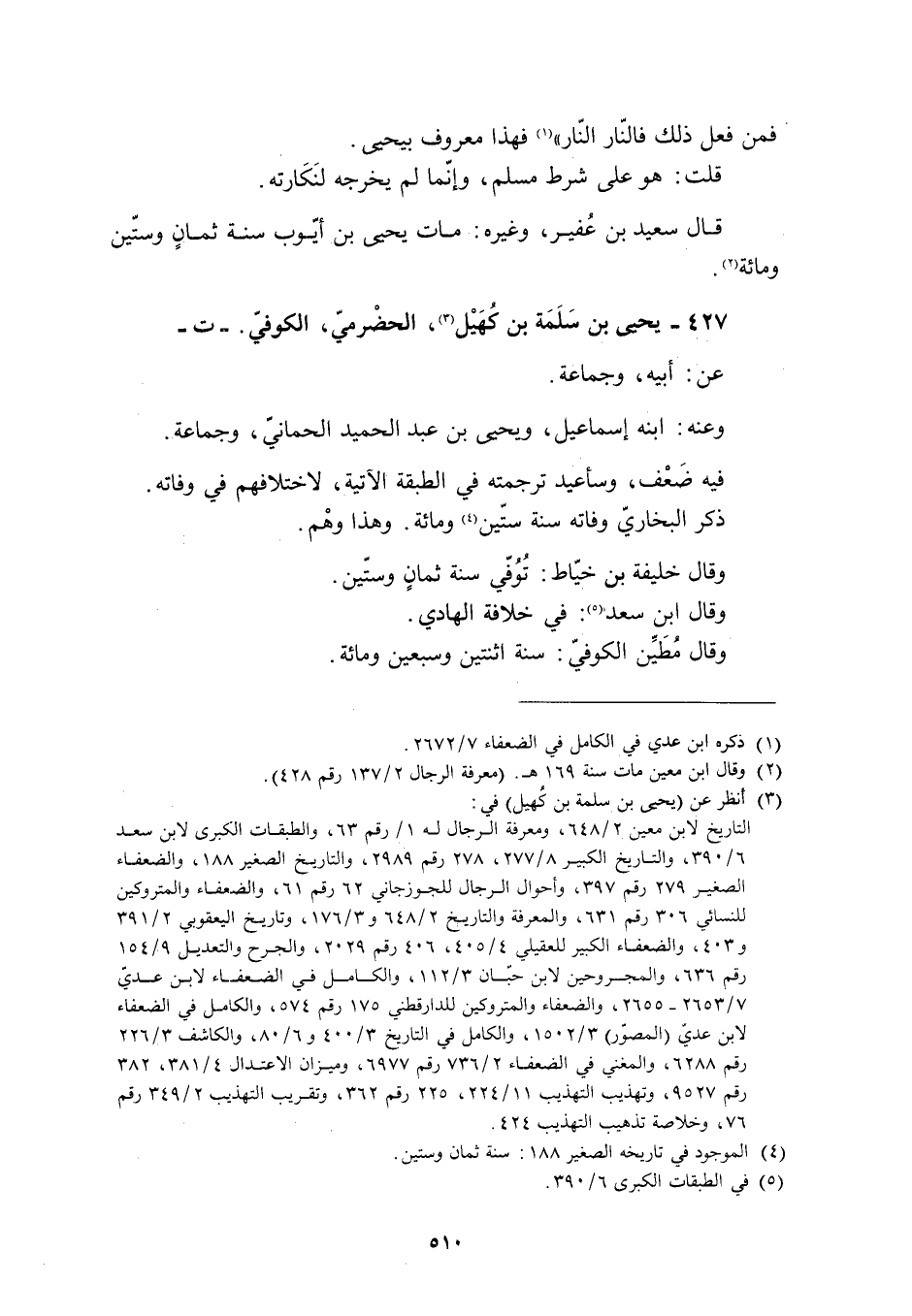 427- يَحْيَى بْنُ سَلَمَةَ بْنِ كُهَيْلٍ [3] ، الْحَضْرَمِيُّ، الْكُوفِيُّ. - ت- عَنْ: أَبِيهِ، وَجَمَاعَةٍ.