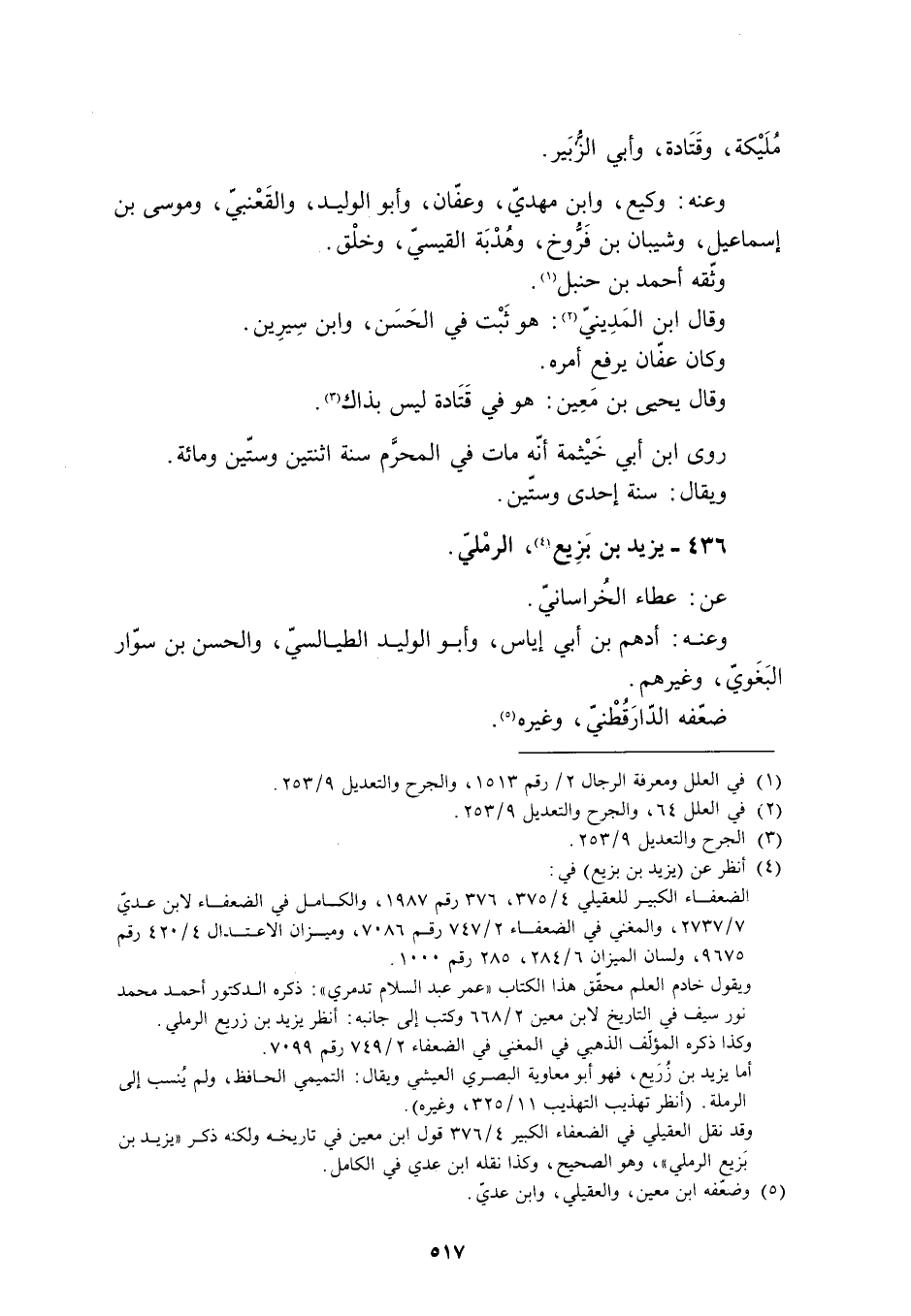 ويقول خادم العلم محقّق هذا الكتاب «عمر عبد السلام تدمري» : ذكره الدكتور أحمد محمد نور سيف في التاريخ لابن معين 2/ 668 وكتب إلى جانبه: انظر يزيد بن زريع الرمليّ.