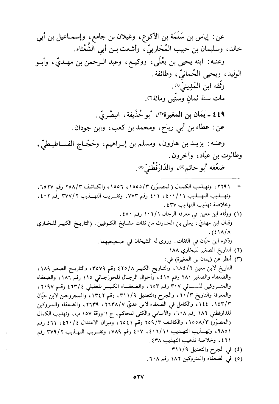 449- يَمَانُ بْنُ الْمُغِيرَةِ [3] ، أَبُو حُذَيْفَةَ، الْبَصْرِيُّ.
