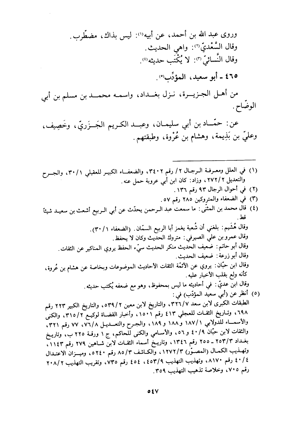 [1] في العلل ومعرفة الرجال 2/ رقم 3402، والضعفاء الكبير للعقيليّ 1/ 30، والجرح والتعديل 2/ 272، وزاد: كان ابن أبي عروبة حمل عنه.