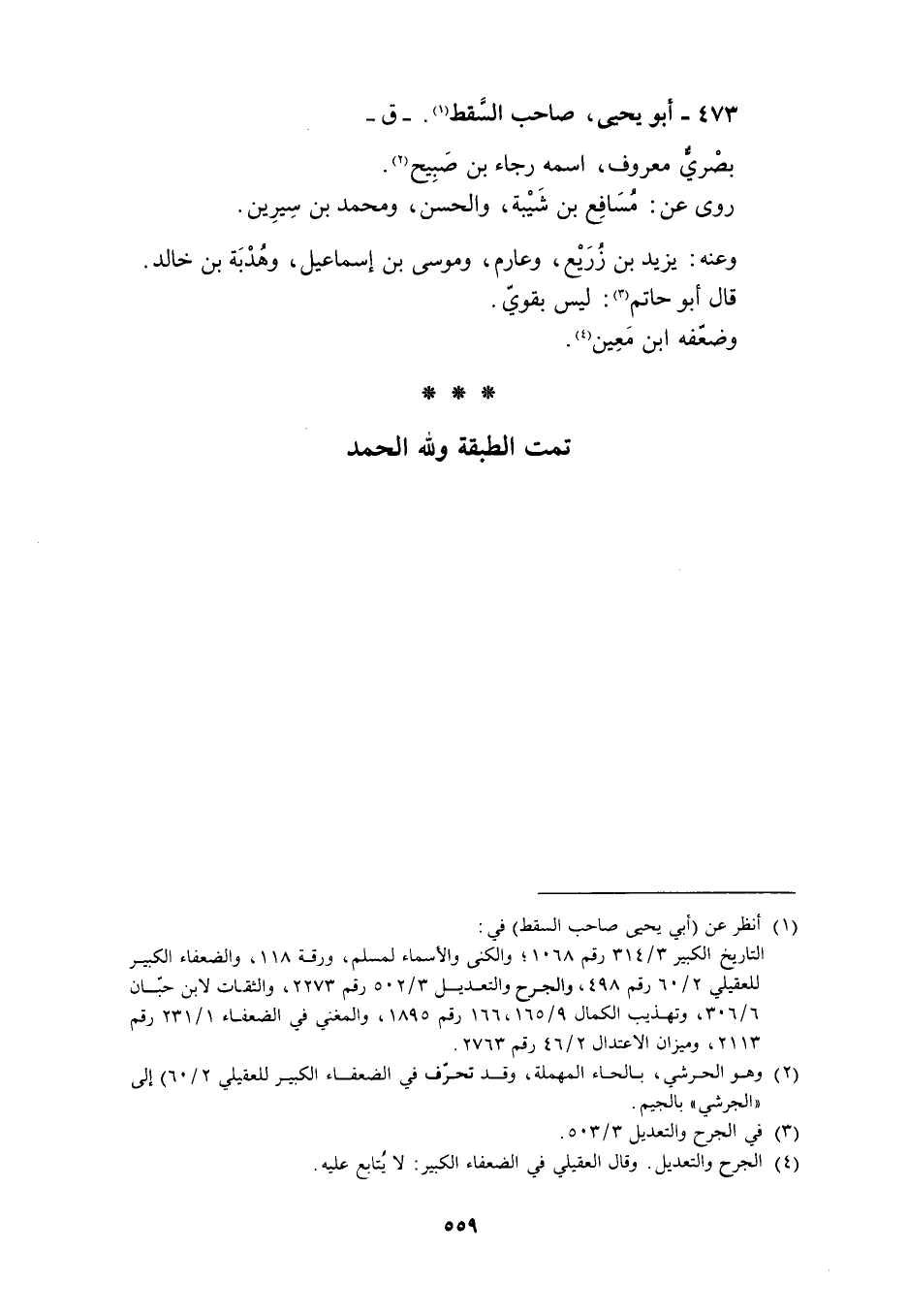 473- أَبُو يَحْيَى، صَاحِبُ السَّقْطِ [1] . - ق- بَصْرِيٌّ مَعْرُوفٌ، اسْمُهُ رَجَاءُ بْنُ صَبِيحٍ [2] .
