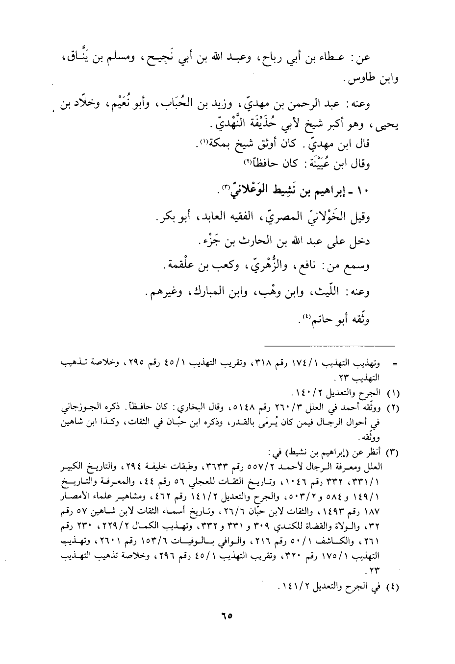 [ () ] وتهذيب التهذيب 1/ 174 رقم 318، وتقريب التهذيب 1/ 45 رقم 295، وخلاصة تذهيب التهذيب 23.