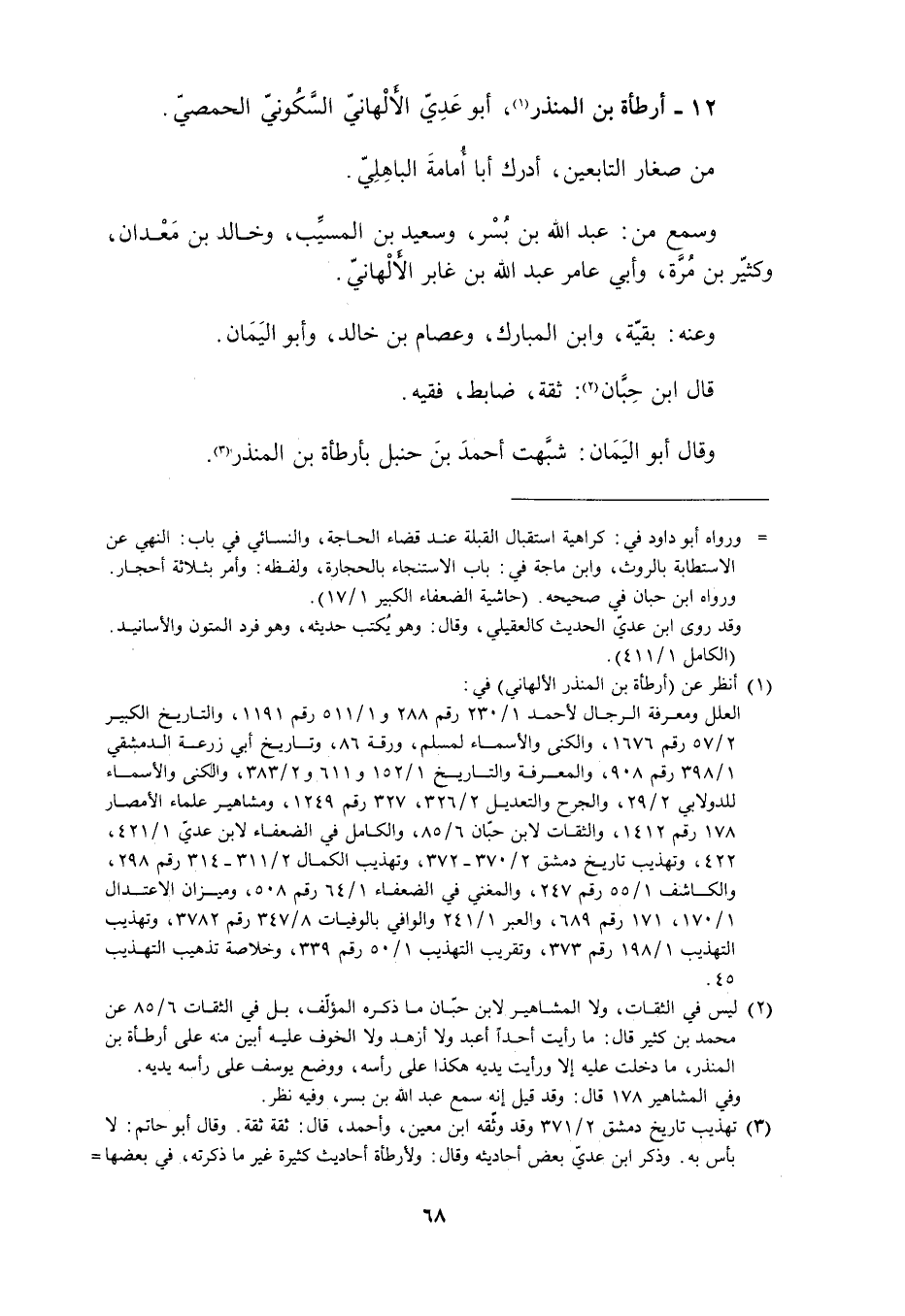 12- أَرْطَأَةُ بْنُ الْمُنْذِرِ [1] ، أَبُو عَدِيٍّ الأَلْهَانِيُّ السَّكُونِيُّ الْحِمْصِيُّ.