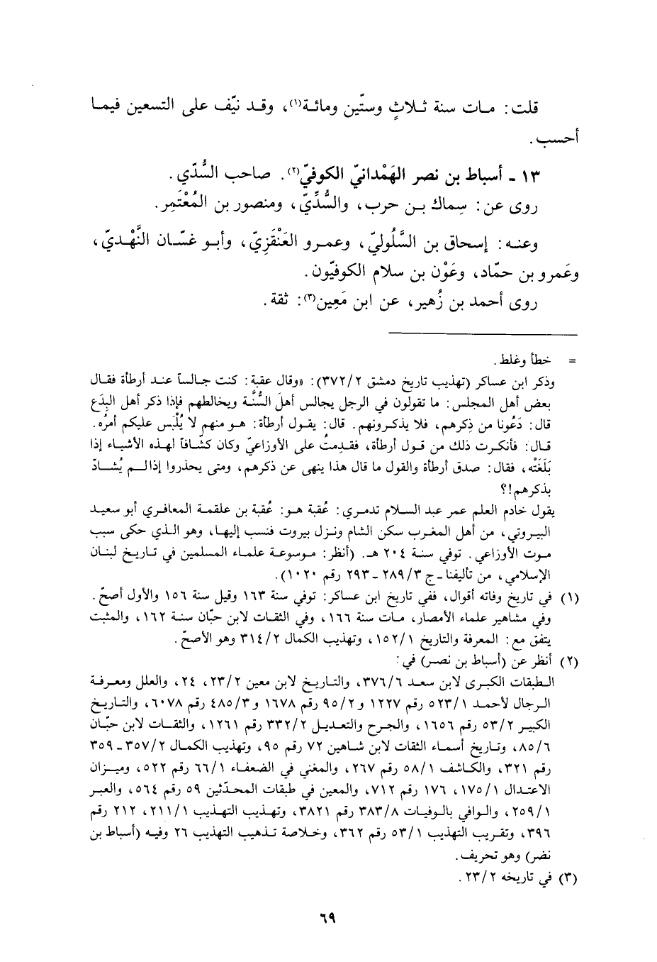 13- أَسْبَاطُ بْنُ نَصْرٍ الْهَمْدَانِيُّ الْكُوفِيُّ [2] . صَاحِبُ السُّدِّيِّ.