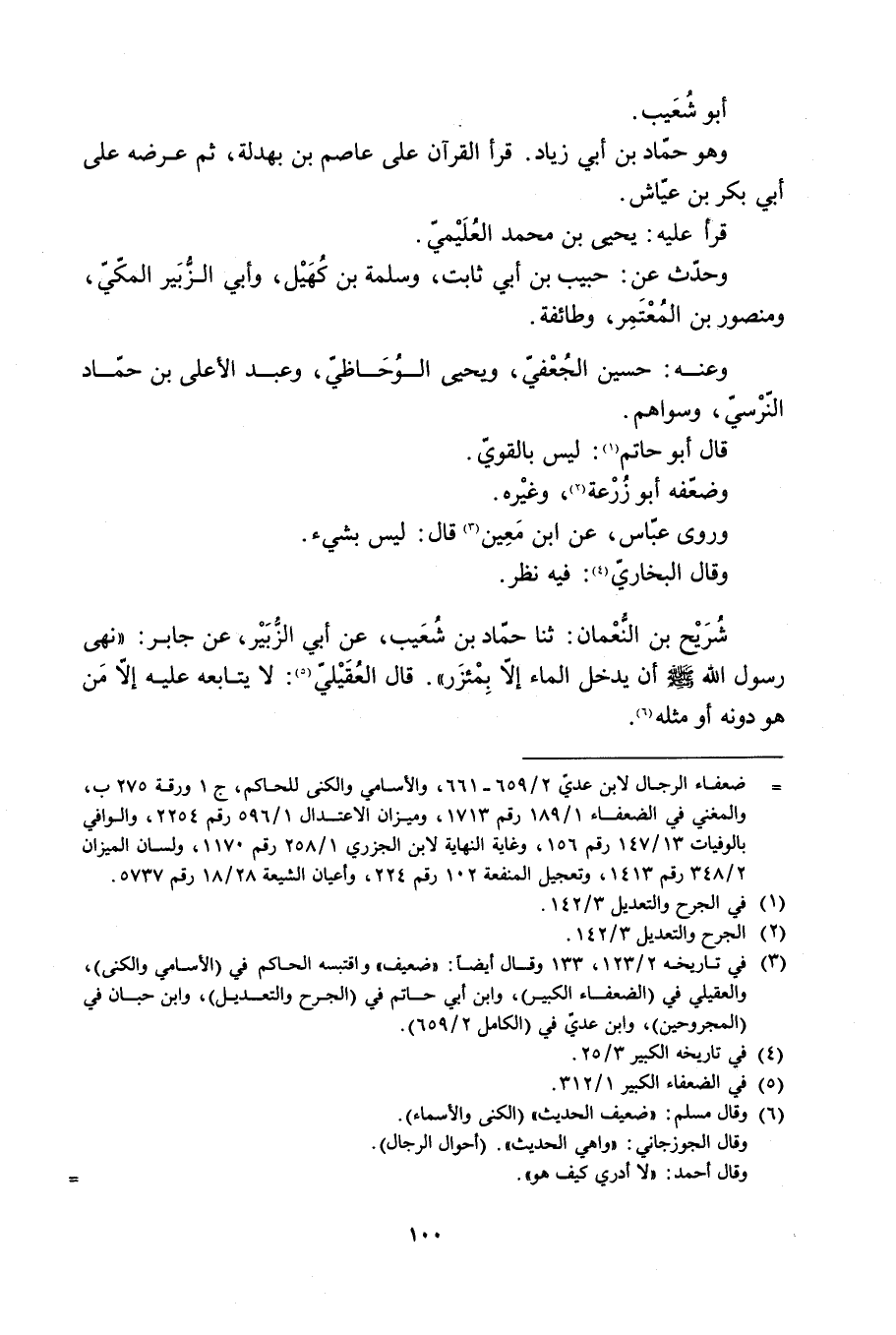 شُرَيْحُ بْنُ النُّعْمَانِ: ثَنَا حَمَّادُ بْنُ شُعَيْبٍ، عَنْ أَبِي الزُّبَيْرِ، عَنْ جَابِرٍ: «نَهَى رَسُولَ اللَّهِ صَلَّى اللَّهُ عَلَيْهِ وَسَلَّمَ إِنَّ يُدْخَلَ الْمَاءُ إِلا بِمِئْزَرٍ» . قَالَ الْعُقَيْلِيُّ [5] : لا يُتَابِعُهُ عَلَيْهِ إِلا مَنْ هو دونه أو مثله [6] .