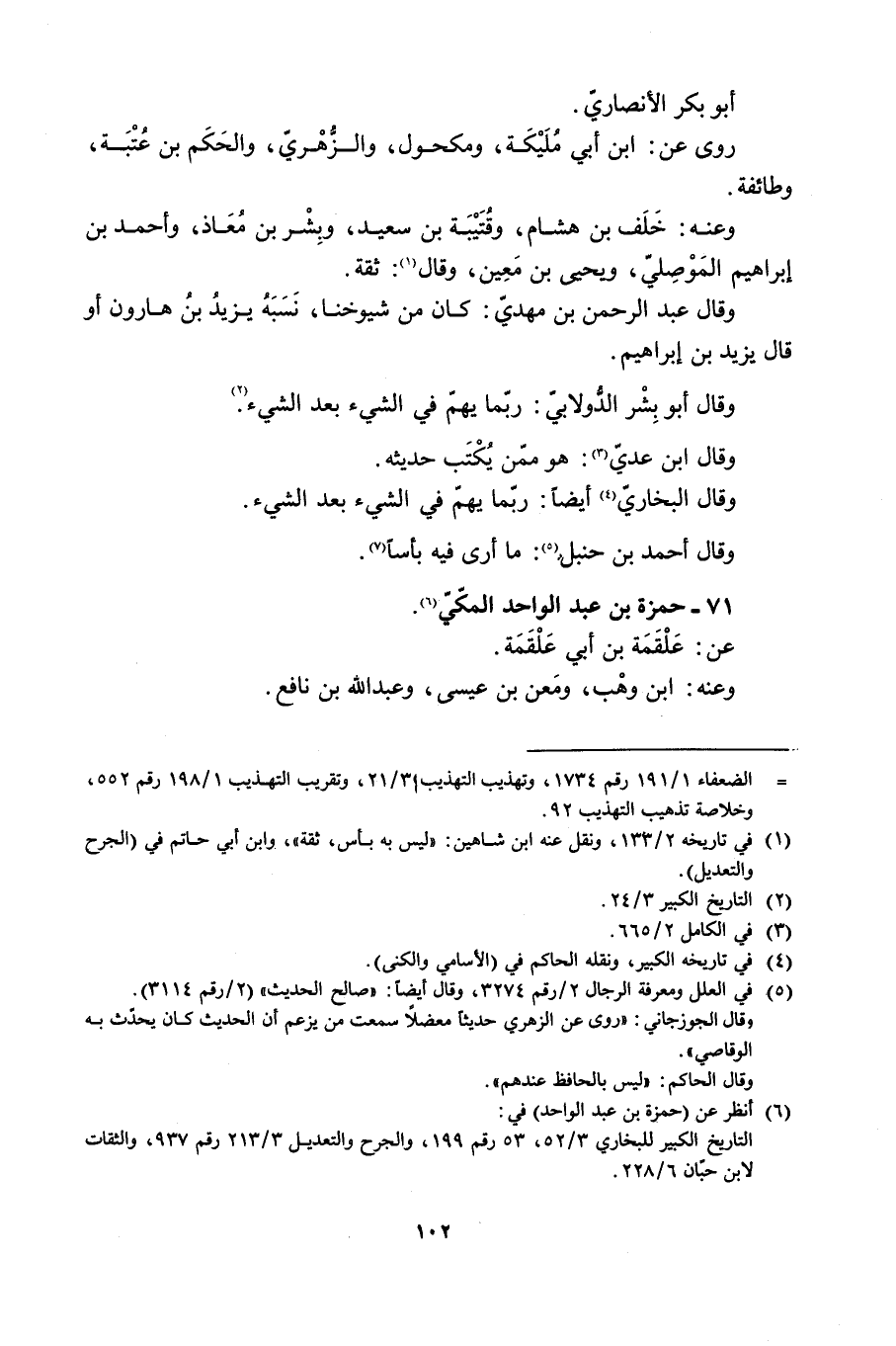 [ () ] الضعفاء 1/ 191 رقم 1734، وتهذيب التهذيب 3/ 21، وتقريب التهذيب 1/ 198 رقم 552، وخلاصة تذهيب التهذيب 92.